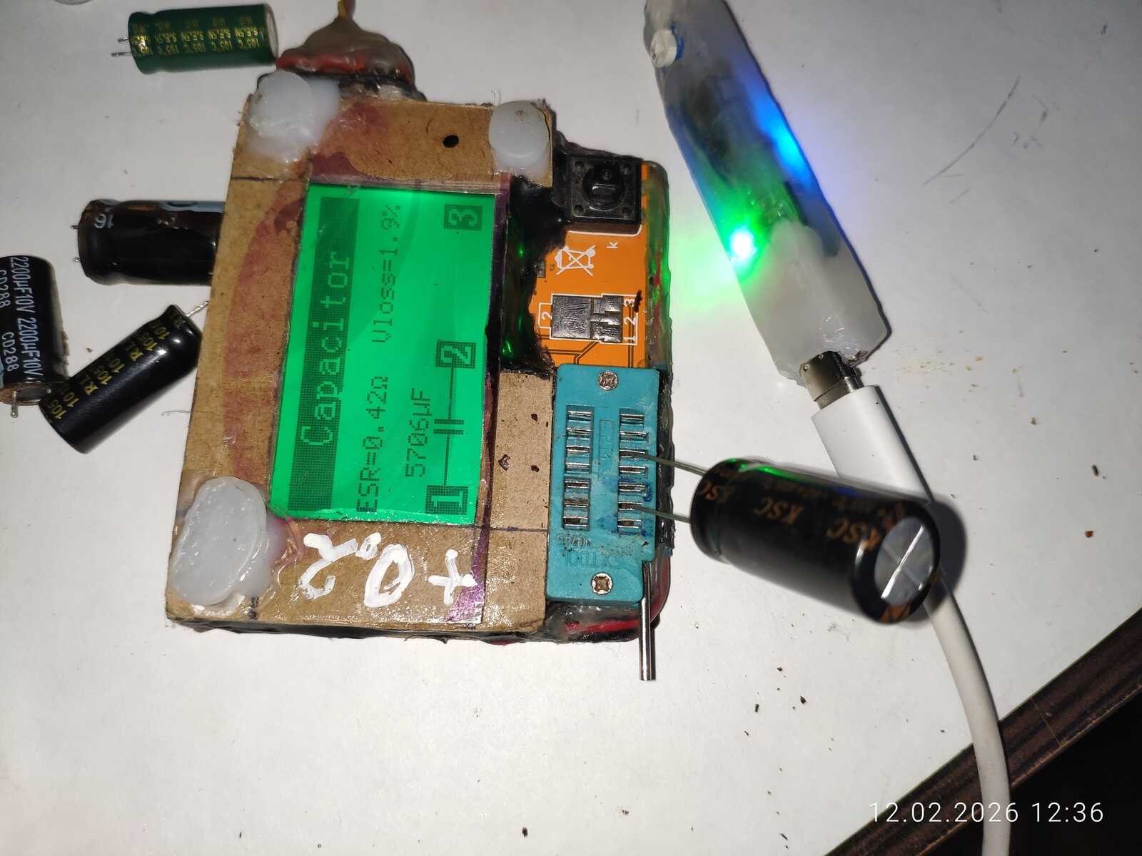 Выпаиваю конденсаторы и проверяю всё, что часто выходит из строя. Но, несмотря на возраст в два десятилетия, заводские конденсаторы показывают хорошие параметры. Я пытался найти лучшие образцы из своей коллекции на замену. Но они оказались не сильно лучше того, что уже было припаяно.