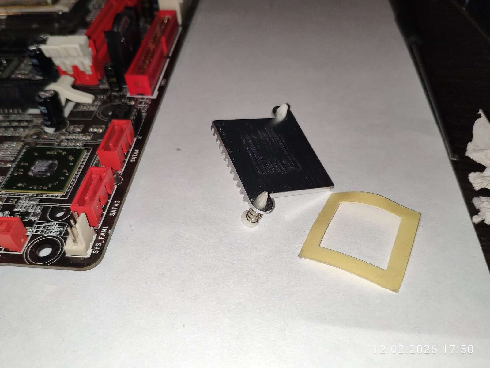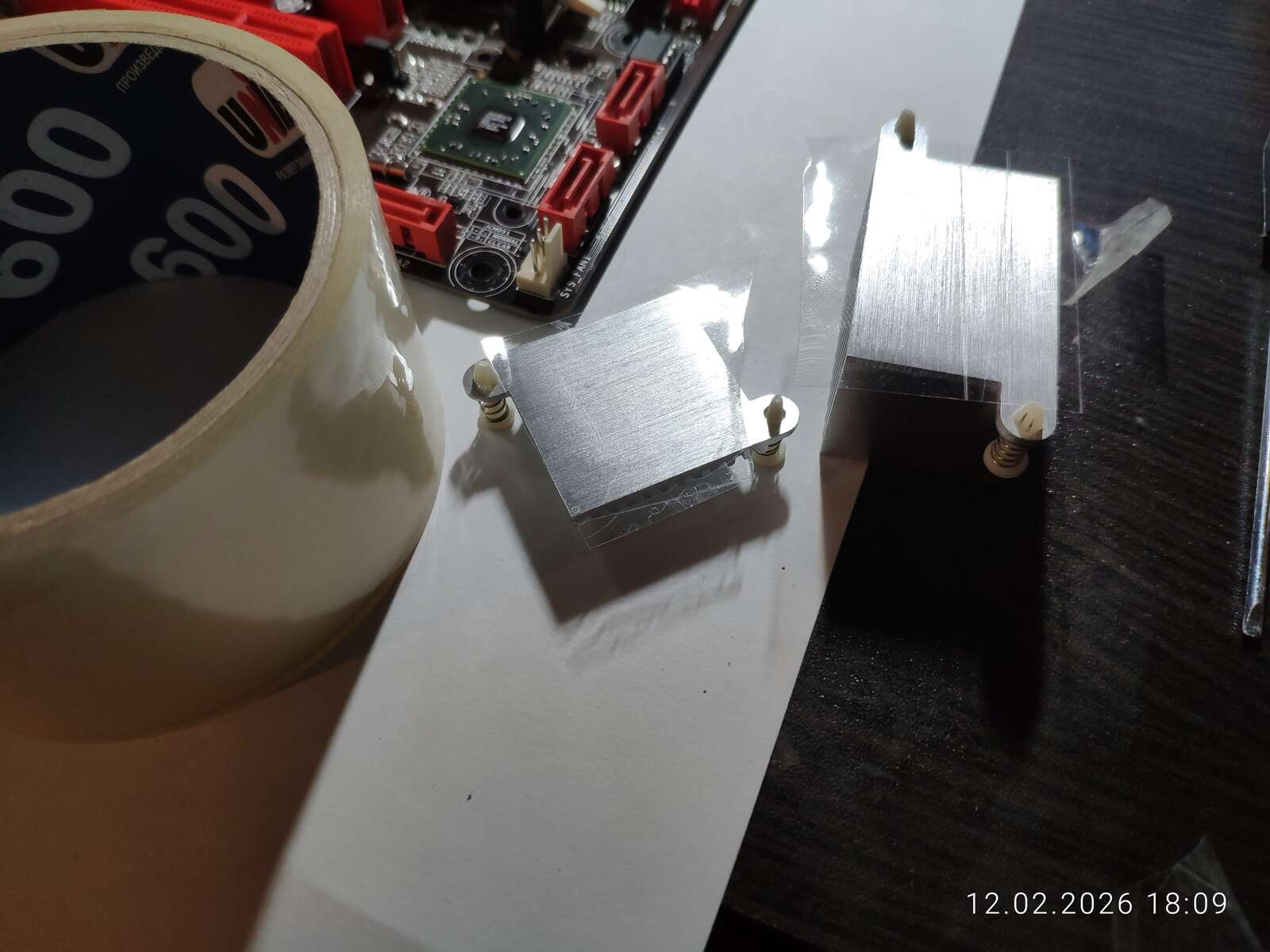 Прежде чем собирать системную плату, мы внесём одну простую, но очень важную модификацию. Для этого нам потребуется наклеить обычный скотч на пятки радиаторов.