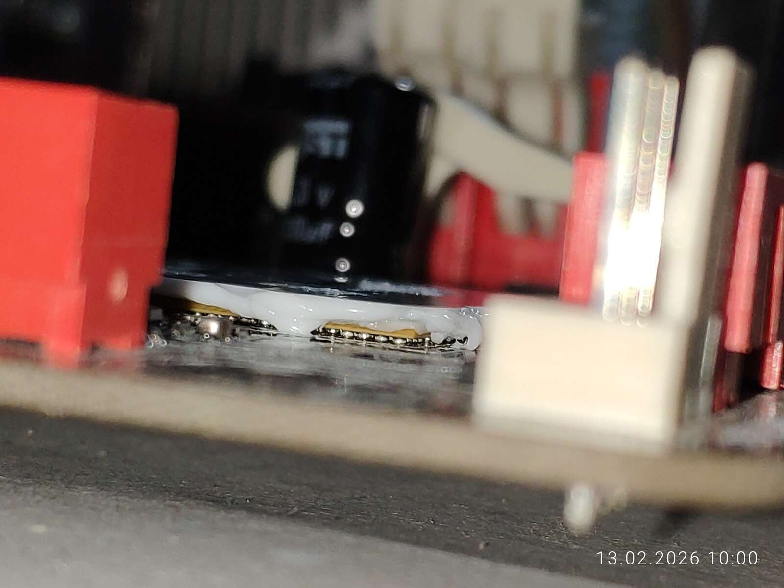 Расстояние между некоторыми дорожками вызывают вопросы. В одном месте даже заметил лёгкое потемнение от нагрева. Чего не было видно сверху. Но ничего критичного.