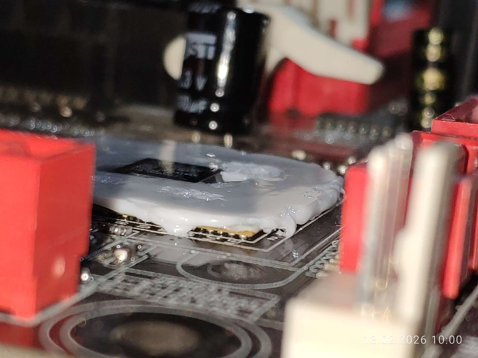 На всякий случай проверяю, как там растекается паста под радиатором.