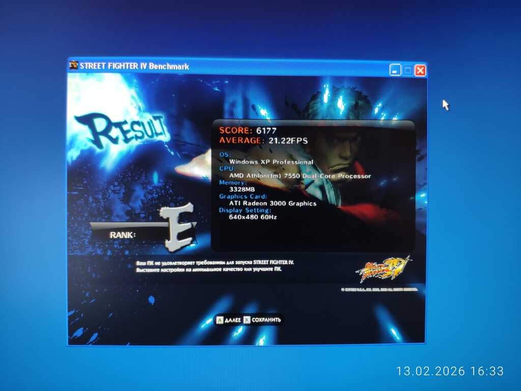 Обзор старого компьютера и объективное тестирование Linux и Windows в Street Fighter IV