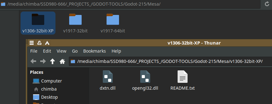 Так же добавил в комплект библиотеки Mesa для Windows на случай, если нужно будет запустить программу, используя центральный процессор вместо видеокарты. Я не использую последние версии Mesa3D по той простой причине, что они поломаны с момента, как AMD приложила руку к проекту в 2021 году. Хотя библиотека dxtn и не нужна, но я предпочитаю не удалять ничего без необходимости. В каком виде было, так и оставил. Только разложил разные версии по отдельным папкам для удобства.