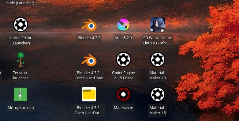 За 3D моделирование будет отвечать Blender v4.3.2 в формате Installer-SH. В качестве редактора растровой графики используем Krita v5.2.9. К сожалению или счастью, Krita — это единственный вменяемый графический редактор для Linux среди мне известных, который действительно пригоден для использования. Прочие зачастую просто делают видимость пригодности.