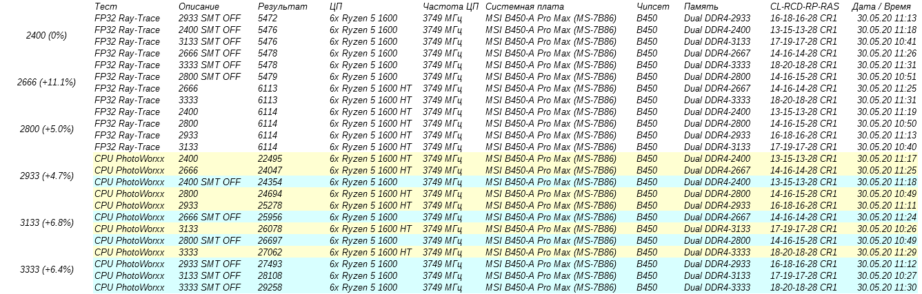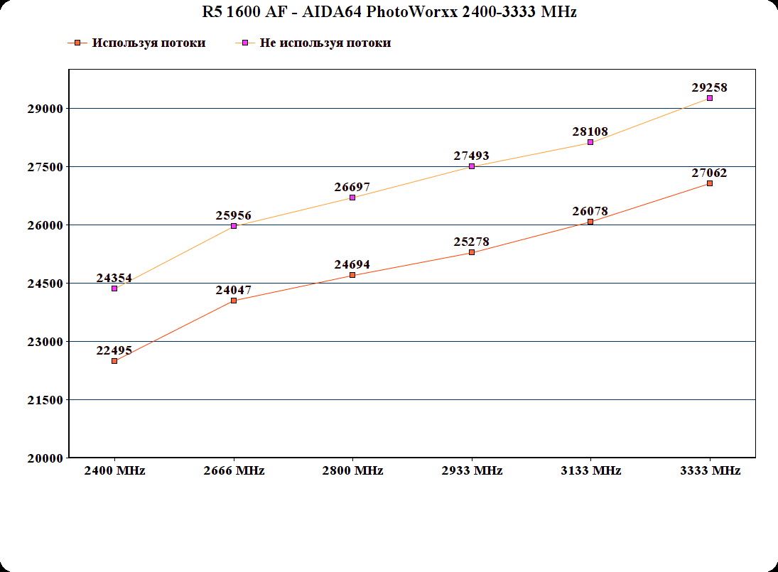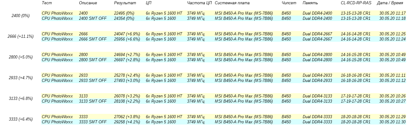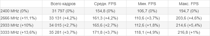 1) Оцениваю разницу результатов при разных частотах ОЗУ