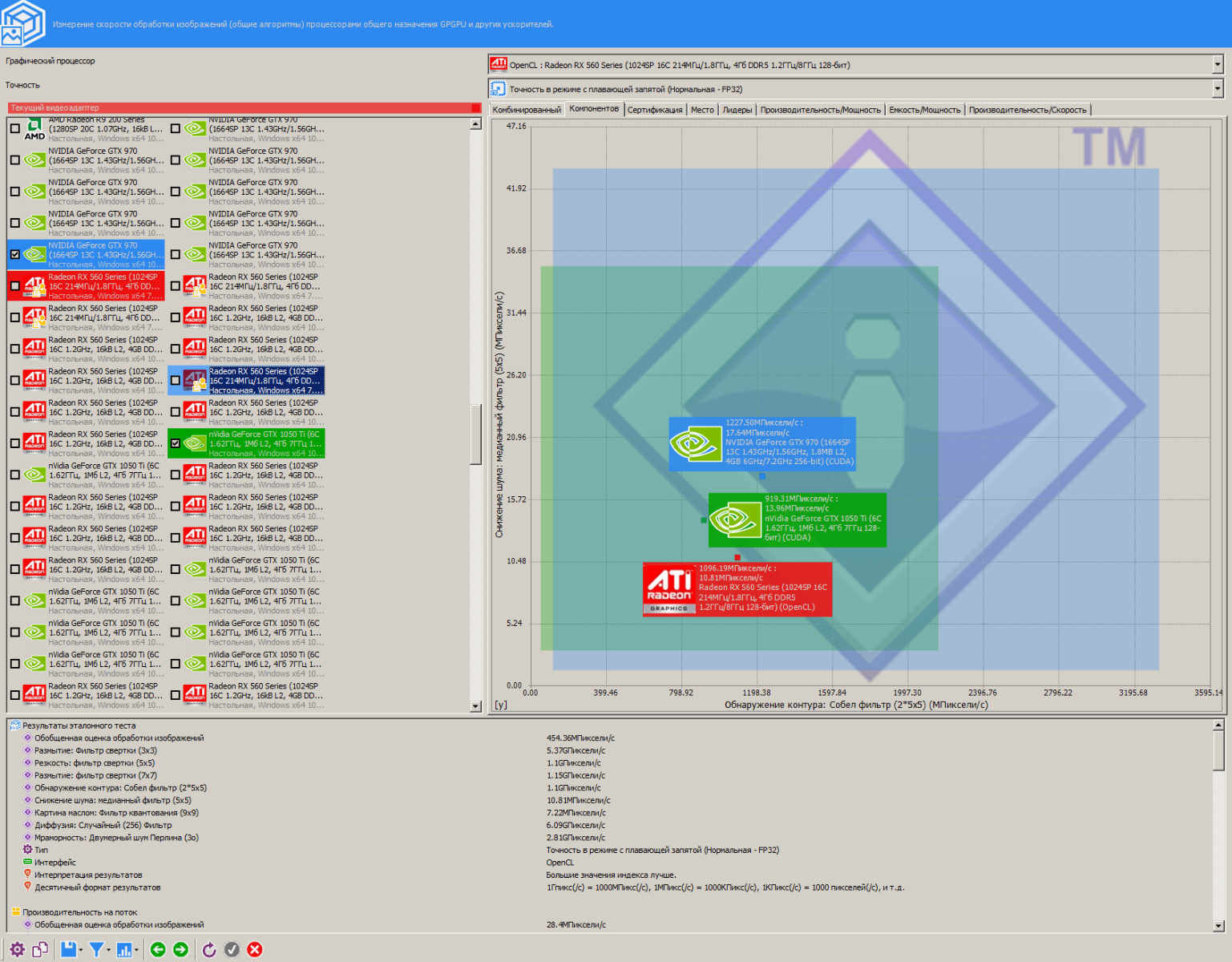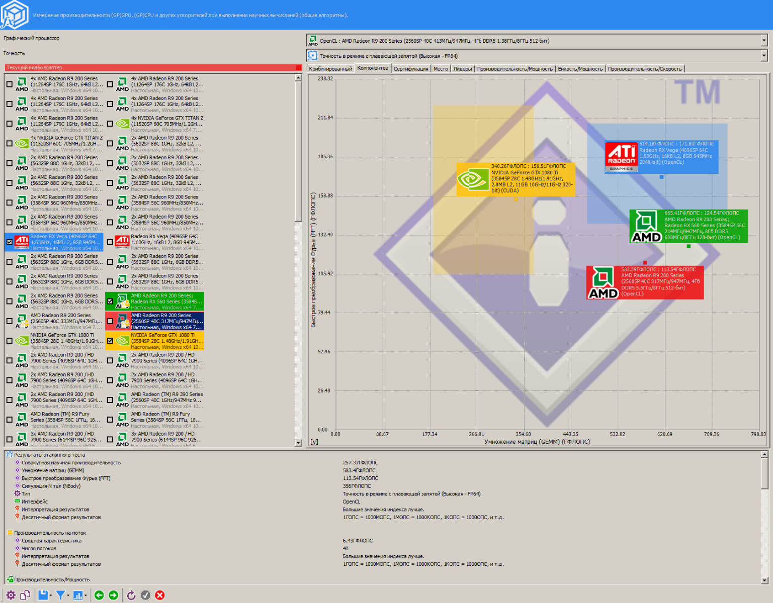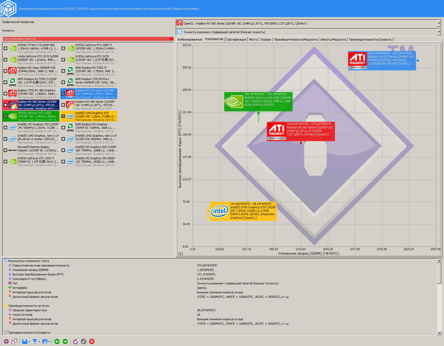 Как можно заметить, RX 560 эффективнее работает чем R9 290 с маленькими размерами блока, и в разгоне RX 560 даже быстрее оказалась чем R9 290, жаль лишь то, что у меня нет на руках видеокарты с чипом Tahiti, там результаты гораздо интереснее будут...