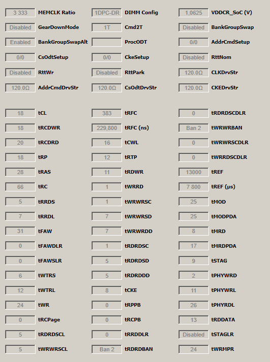 3333 MHz тайминги от 2800 MHz (533 MHz разница) CL-RCD-RP-RAS - 18-20-18-28 CR1