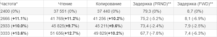 А еще копирование в памяти при выходе за пределы 2933 МГц перестало расти "впритык" за разницей частоты, что хорошо видно если пропустить промежуточные 2800 и 3133 частоты.