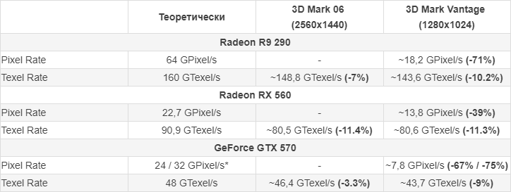 - Проверка пиксельной скорости заполнения (ROP).