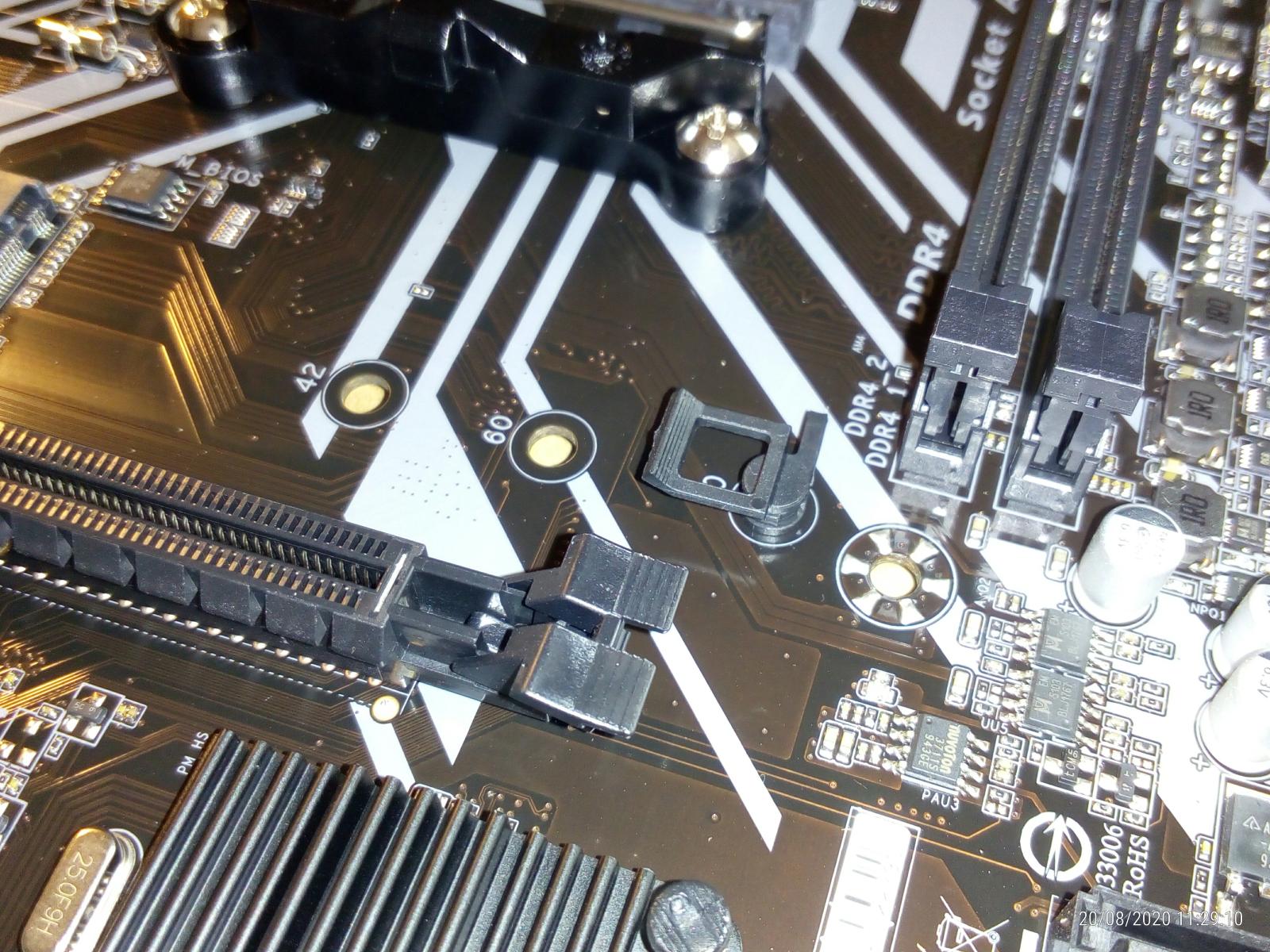M2 крепление в самой системной плате, никаких винтиков, просто якорь пластиковый.