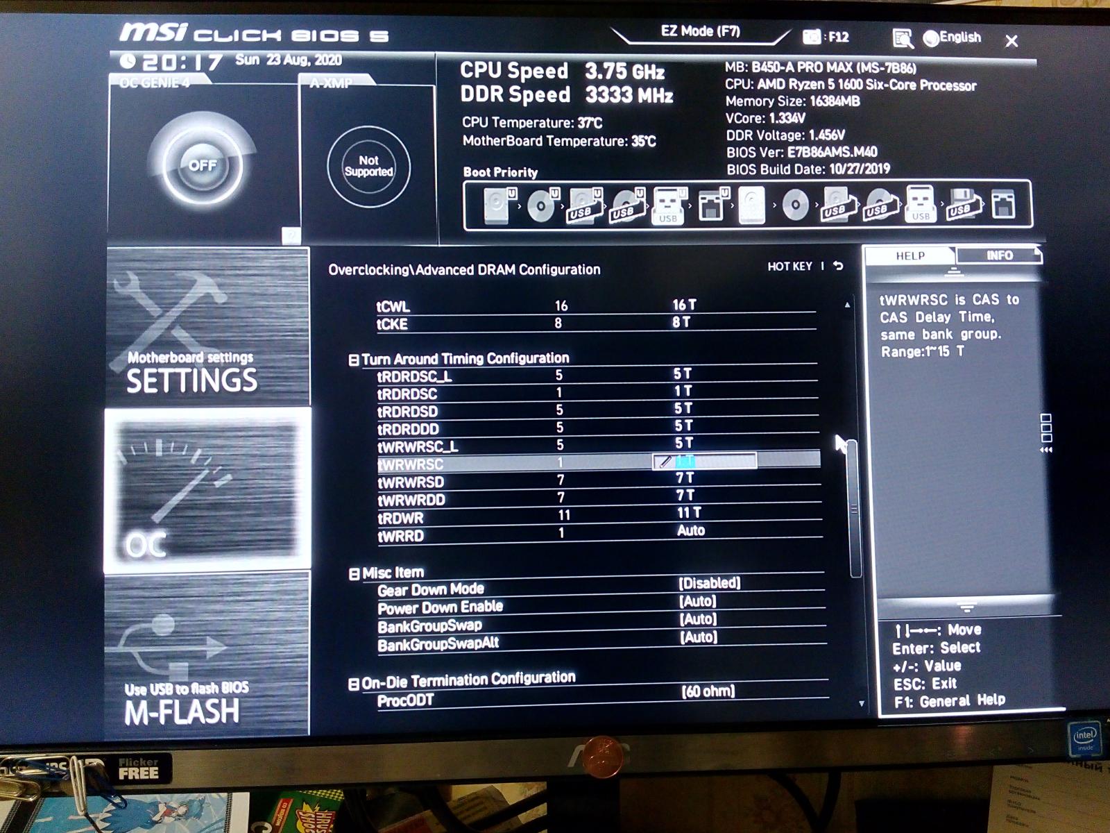Рабочие настройки ОЗУ для MSI B450-A PRO MAX: