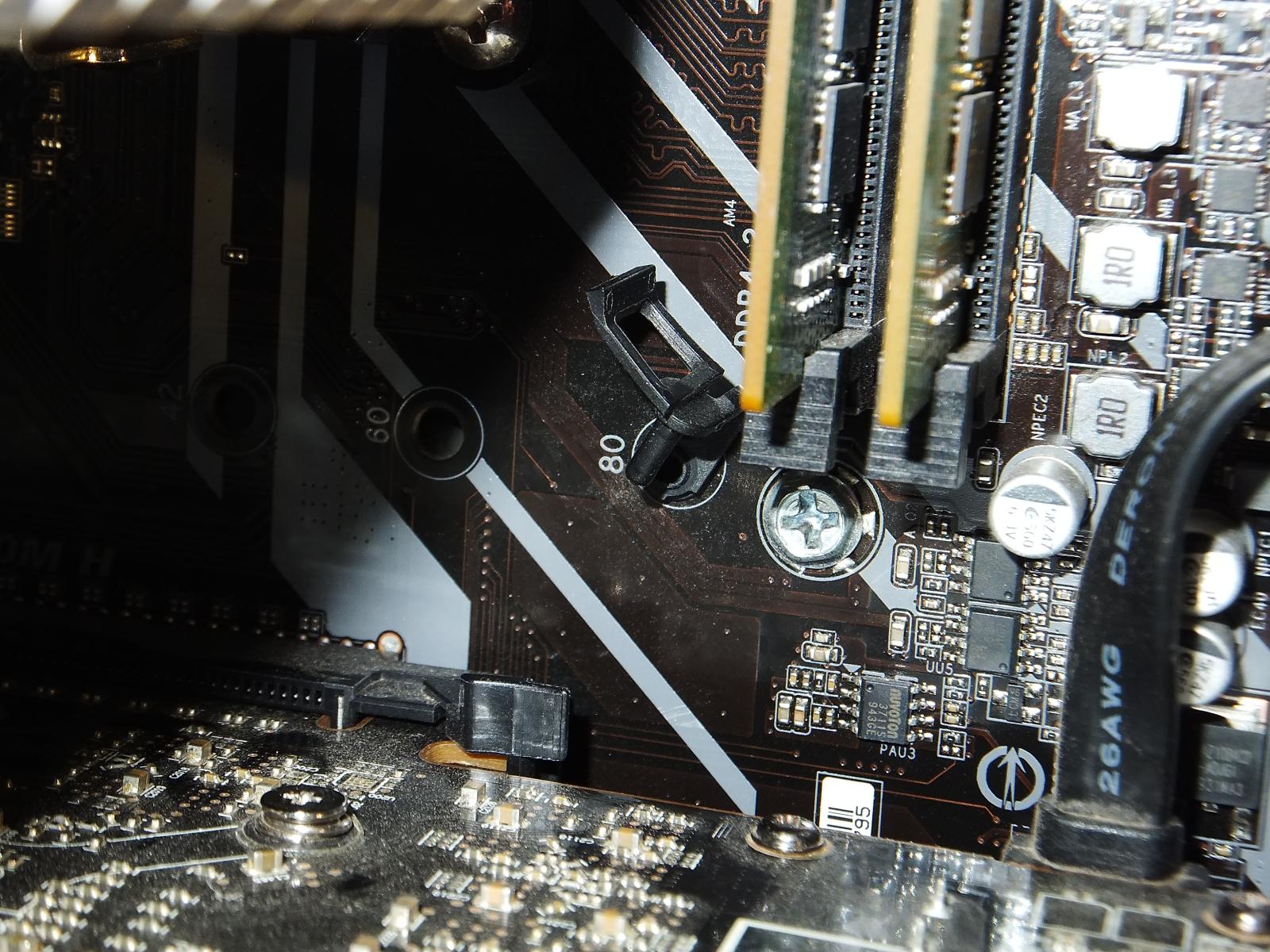 Сначала я был озадачен при установке SSD в системную плату от Gigabyte, крепление не особо понятно выглядит без инструкции, но методом тыка вполне быстро догадался что к чему.
