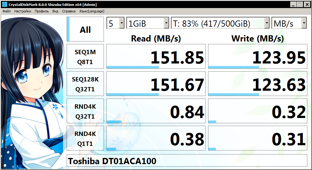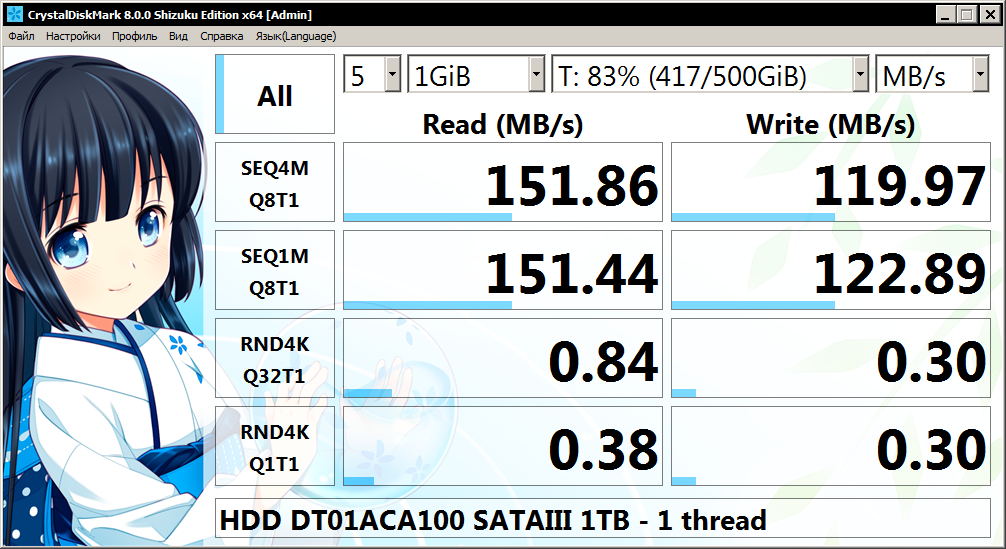 HDD при таких же настройках как SSD на предыдущем скриншоте. |