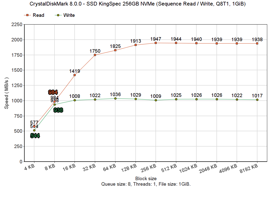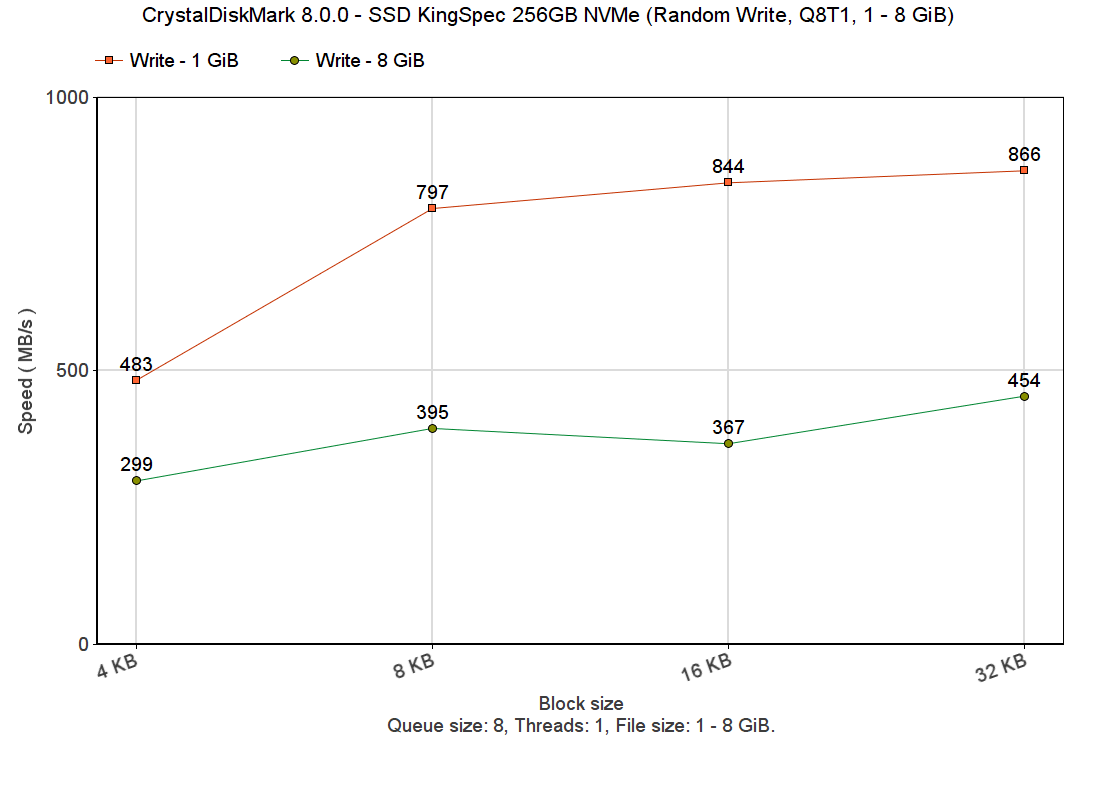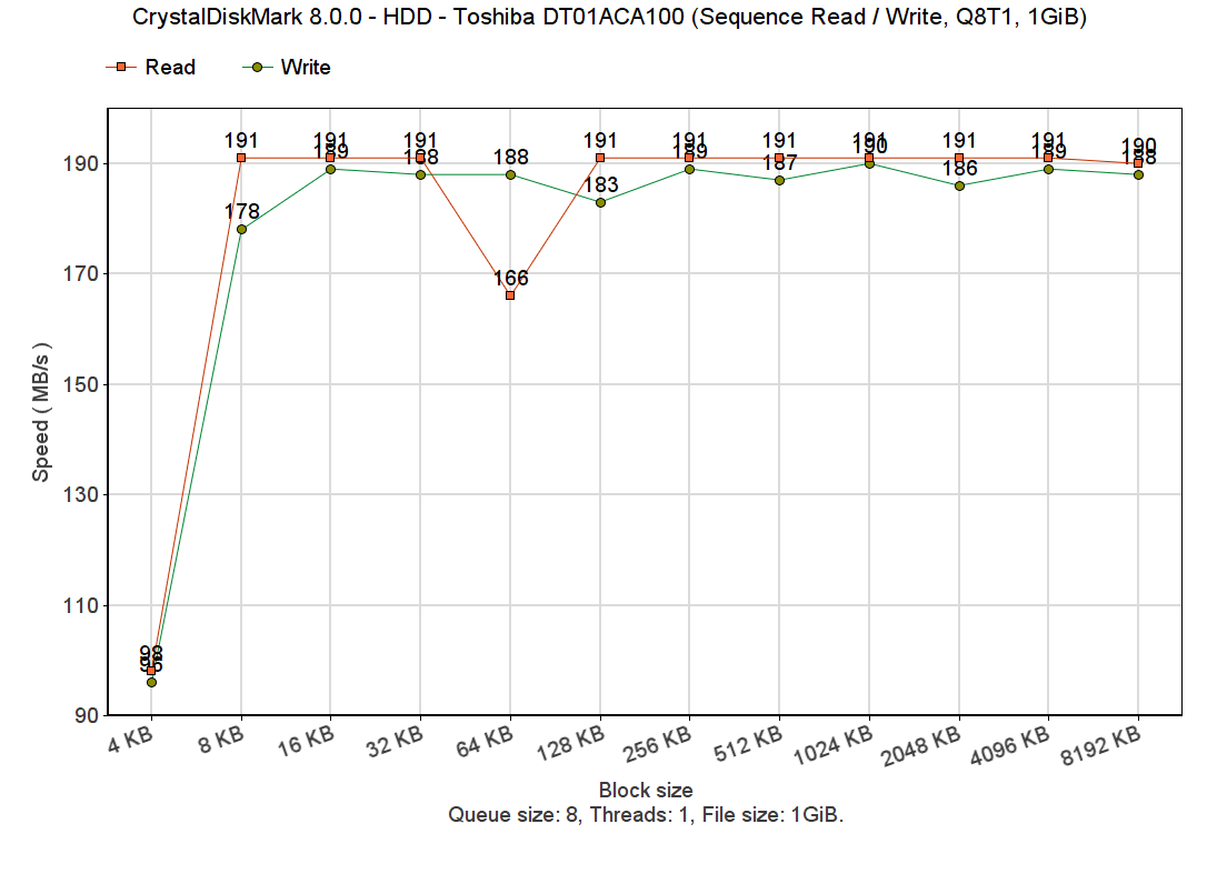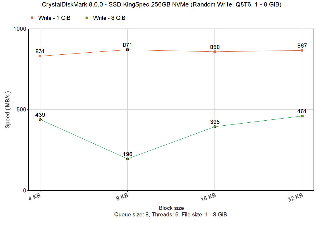 Я всего лишь добавил размер блока 4МБ с длинной очереди 8, а скорость упала до 55-60 МБ/с, когда в стандартном режиме 1M 8Q скорости остались, как и были.