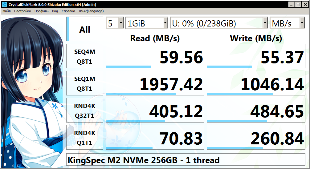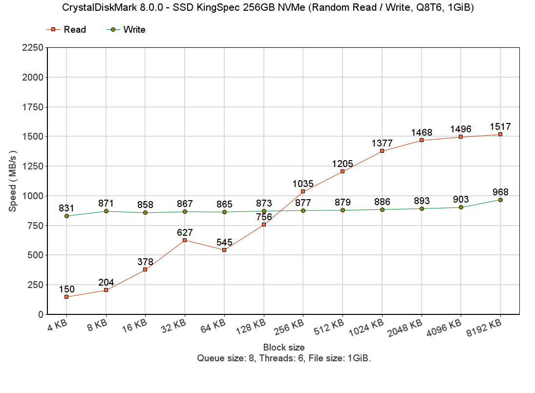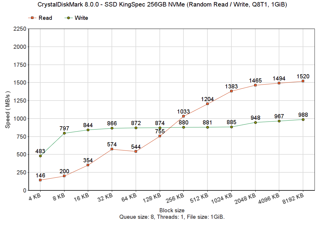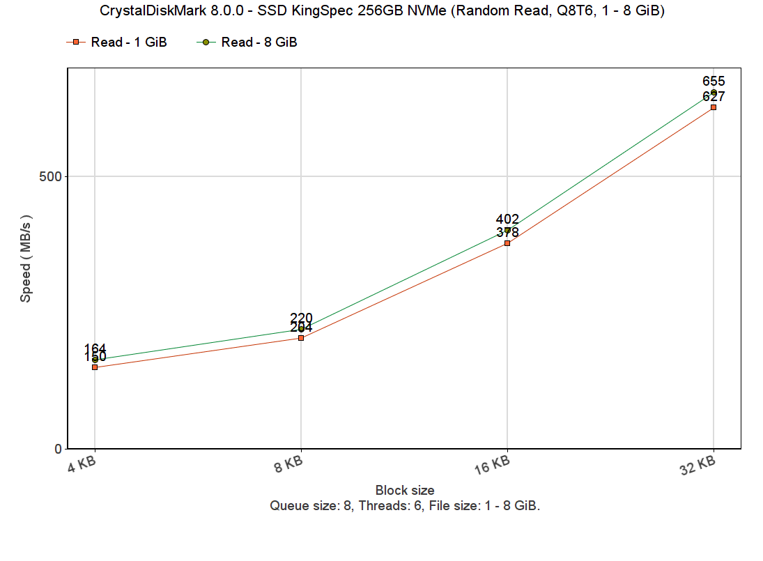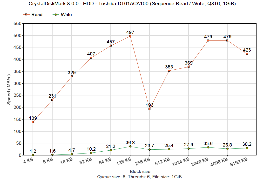 Я всего лишь добавил размер блока 4МБ с длинной очереди 8, а скорость упала до 55-60 МБ/с, когда в стандартном режиме 1M 8Q скорости остались, как и были.