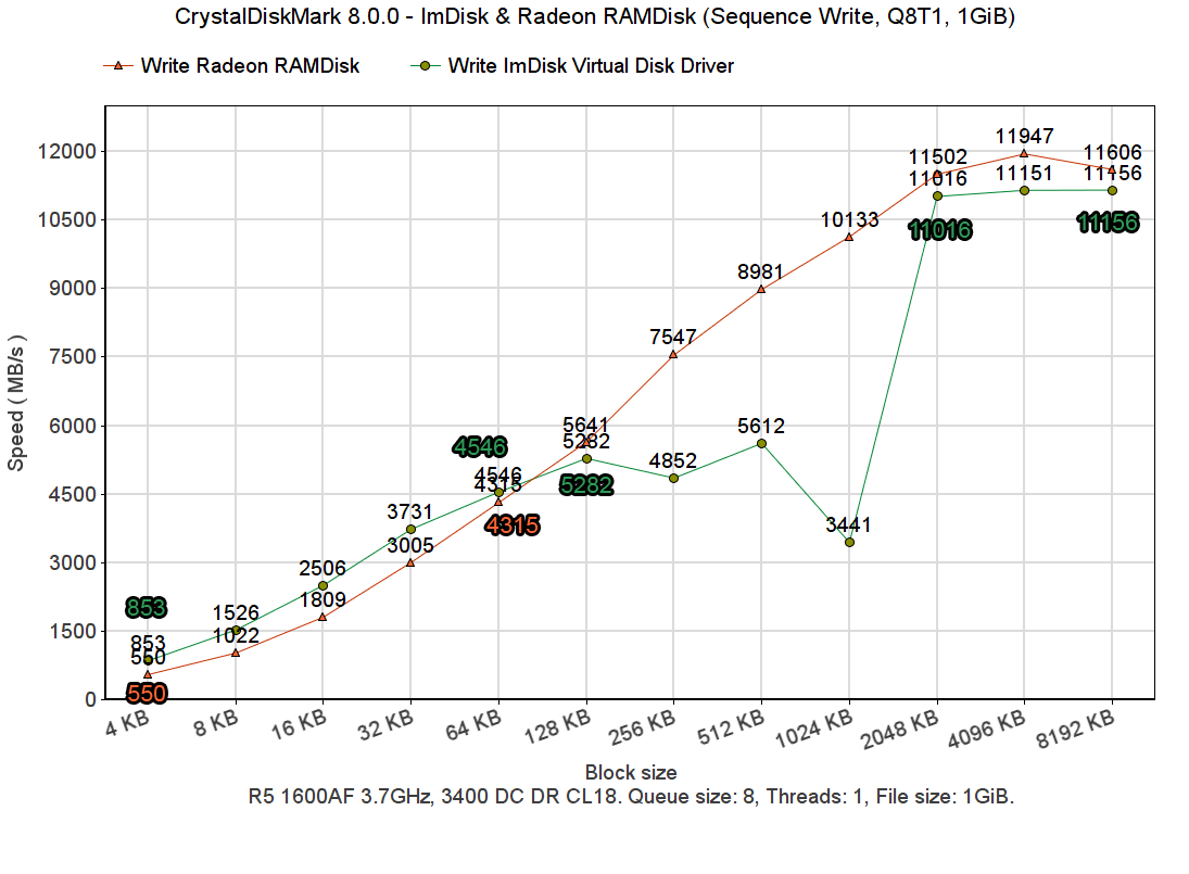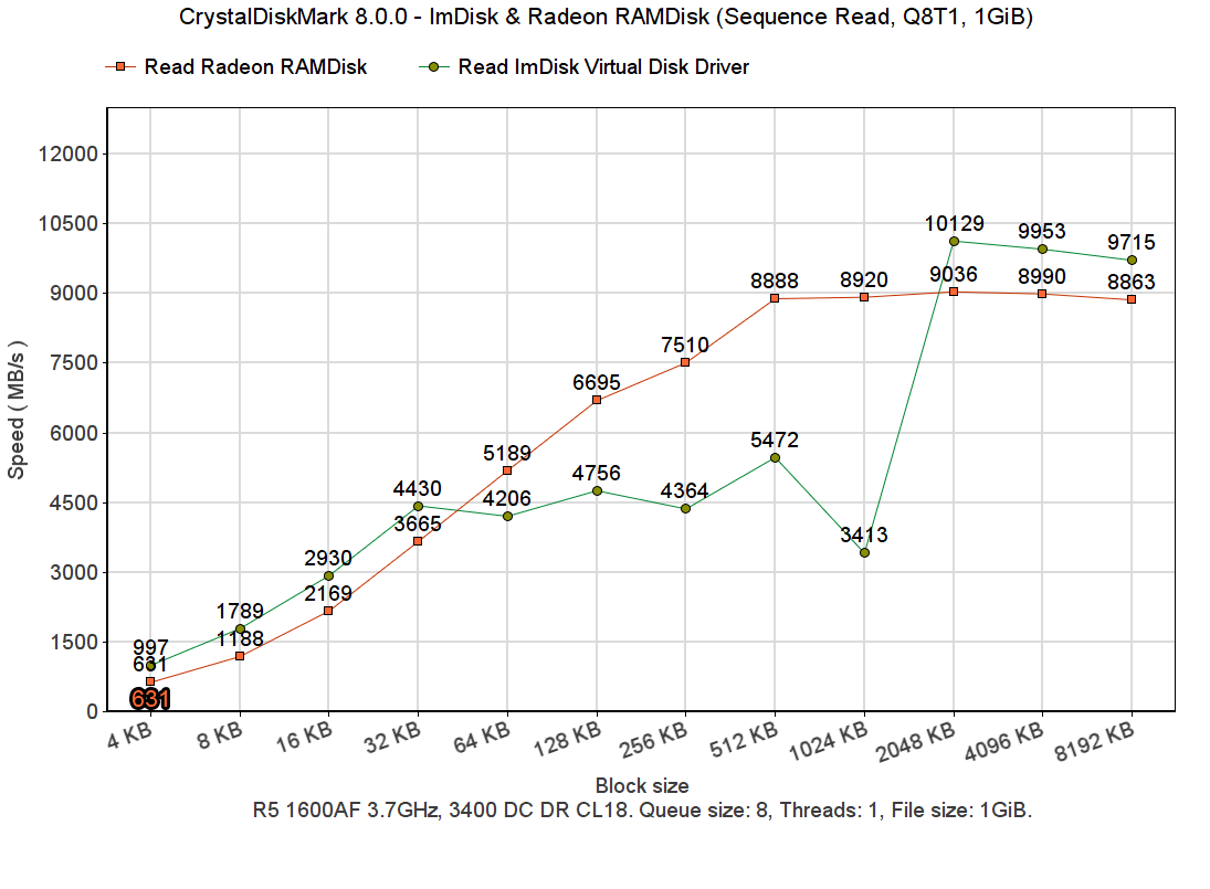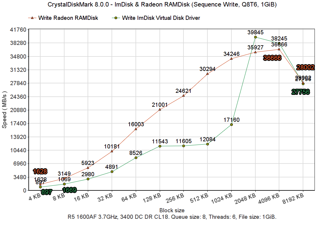 5) RAM-накопитель вне конкуренции по скоростям, даже несмотря на то, что в моем случае было лишь 2 канала памяти и эту память использовал еще процессор.