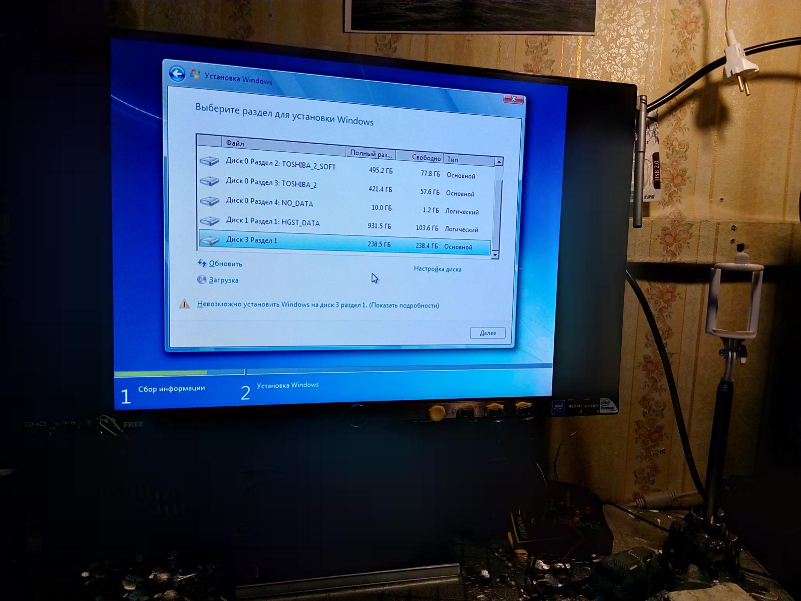 Вот и пришли к установке системы, но с первого раза не получилось к сожалению, я впервые устанавливаю Windows 7 на NVMe SSD.