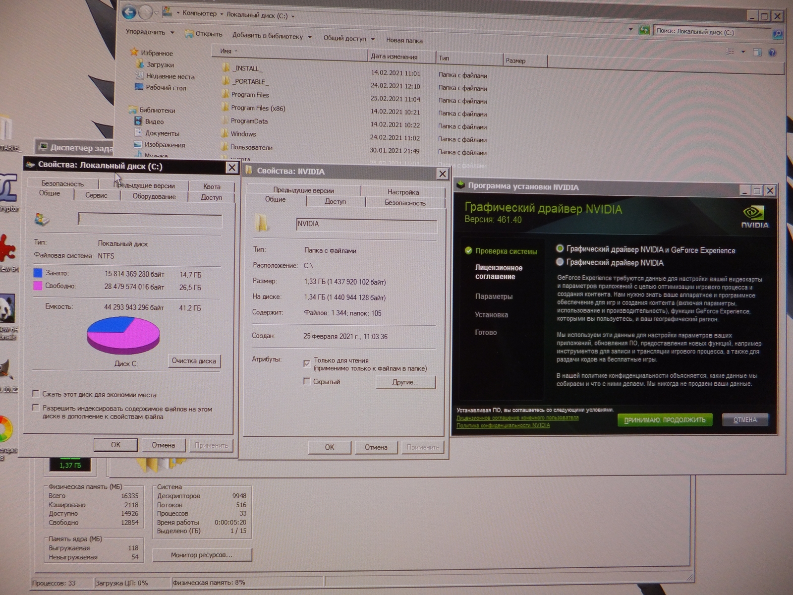 | ОЗУ после запуска GeForce Experience / AMD Control panel | ~1,74 ГБ ~17102 дескрипторов ~630 потоков (композиция рабочего стола вкл.) |