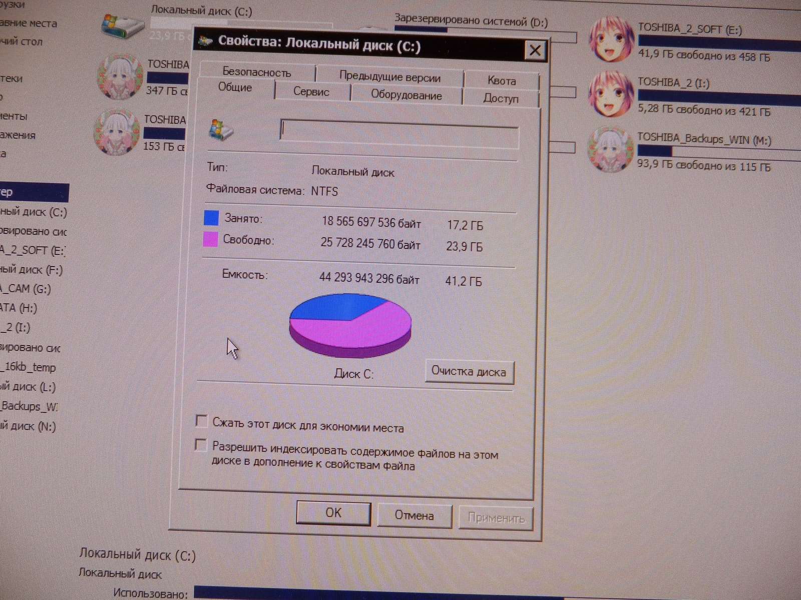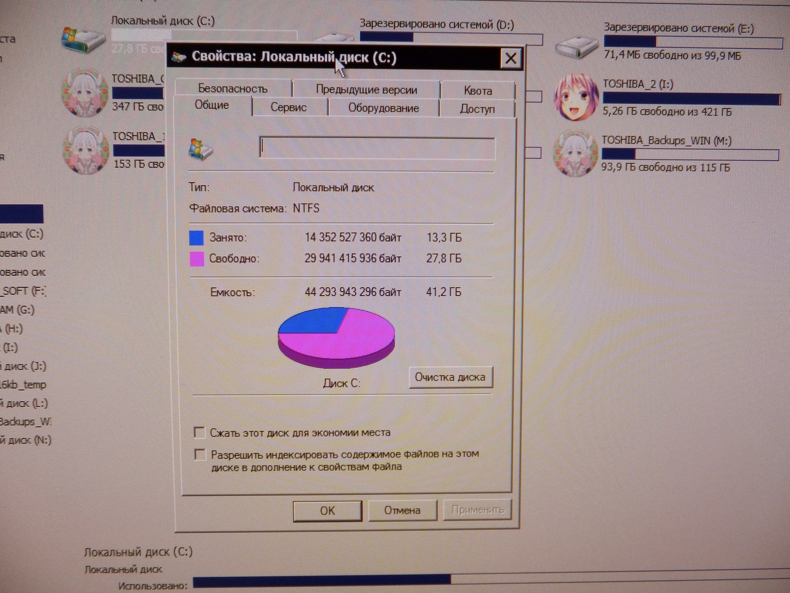 Система разумеется не абсолютно чистая, уже установлен SP1, обновления за исключением официальных червей замаскированных под обновления (KB2977759, KB3068708, KB3035583 и прочие), фреймворки и некоторый софт, это собственно и причина занятых на системном разделе ~13.3 ГБ без драйверов на видеокарту.