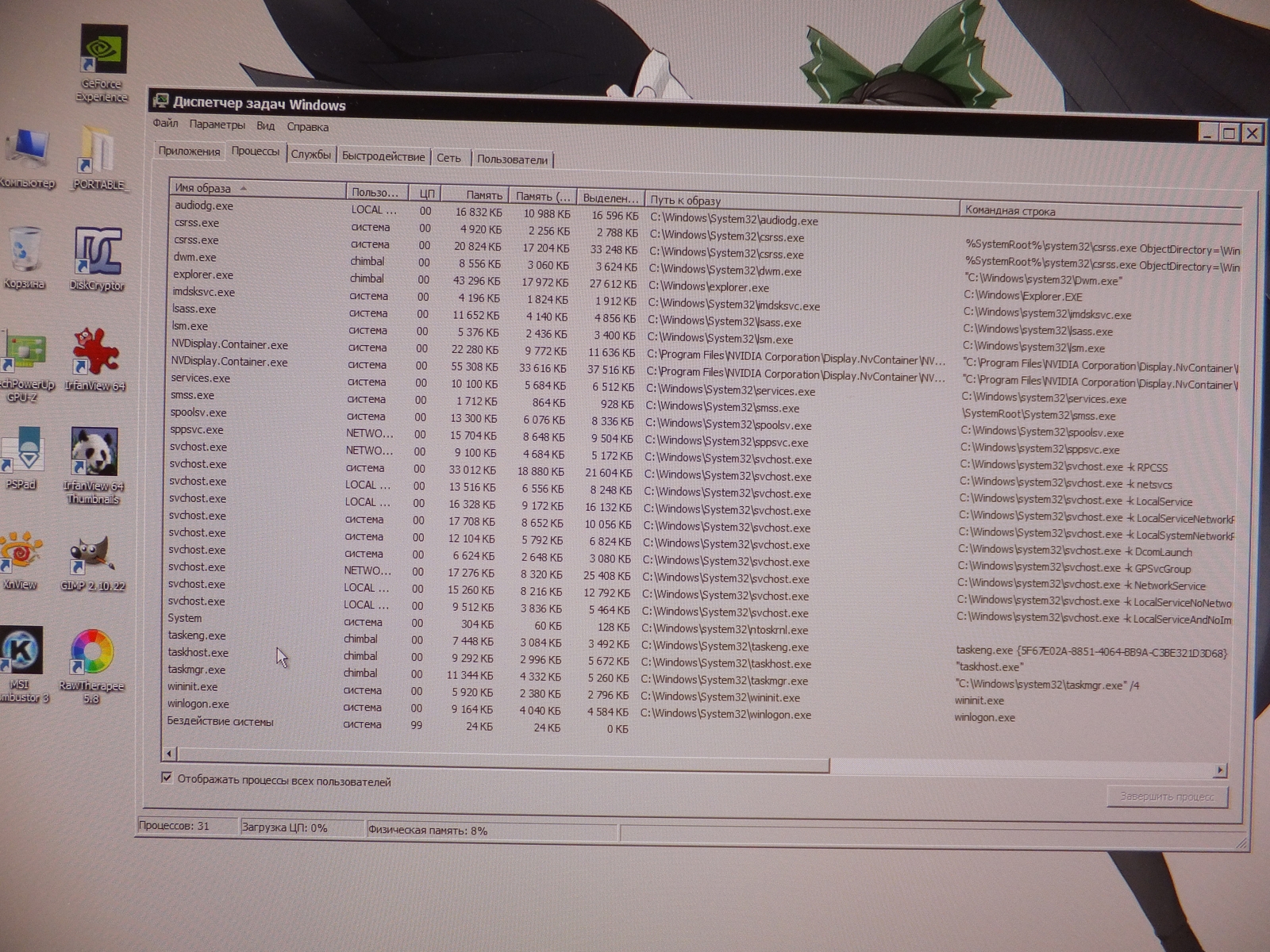 | Диспетчер задач после установки драйвера (после перезагрузки) | ![]() |