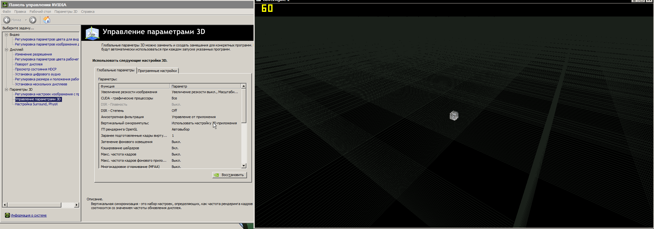 Еще здесь упомяну про "59 Гц", я не ожидал конечно такой подставы от драйвера nVidia, по факту драйвер показывает пользователю 60 Гц, на монитор устанавливает 60 Гц, но для приложений говорит 59 Гц, что вероятно стало причиной тиринга от которого невозможно избавиться вертикальной синхронизацией когда игра в полноэкранном окне работает (зато теперь я знаю причину такой странности).