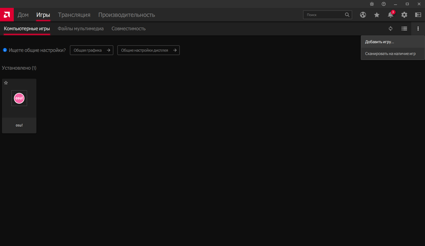 2) Драйвер AMD: Контрольная панель драйвера хорошо проработана, однако она не всегда запускается если композитор рабочего стола отключен.