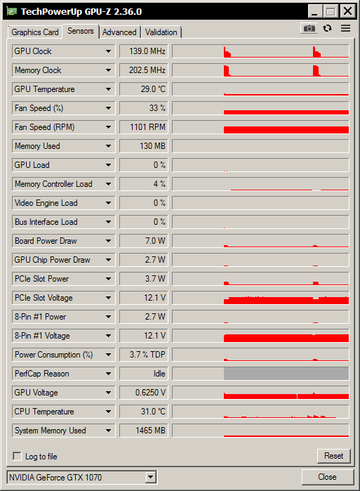 1) Частота ГП. 2) частота ОЗУ. 3) Температура ГП. 4) Температура "Hot Spot" (появилось в GPU-Z v2.37.0) 5) Скорость вентилятора в процентах. 6) Скорость вентилятора в RPM. 7) Памяти использовано. 8) Загрузка ГП. 9) Загрузка контроллера памяти. 10) Загрузка блока обработки видео. 11) Загрузка шины PCI-E. 12) Общая мощность видеокарты. 13) Мощность ГП. 14) Мощность PCI-E. 15) Напряжение PCI-E. 16) Мощность 8-Pin. 17) Напряжение 8-Pin. 18) Потребляемая мощность в процентах от лимита биоса. 19) PerfCap Reason (причина по которой производительность ГП ограничена): Pwr-Мощность, Thrm-температура, VRel-безопасный уровень напряжения, VOp-действующий уровень напряжения, Idle-загрузка ГП ниже максимальной. 20) Напряжение ГП. |