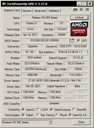 | Версия драйвера | 21.2.2 (Optional, Non-WHQL) (02.02.2021) |