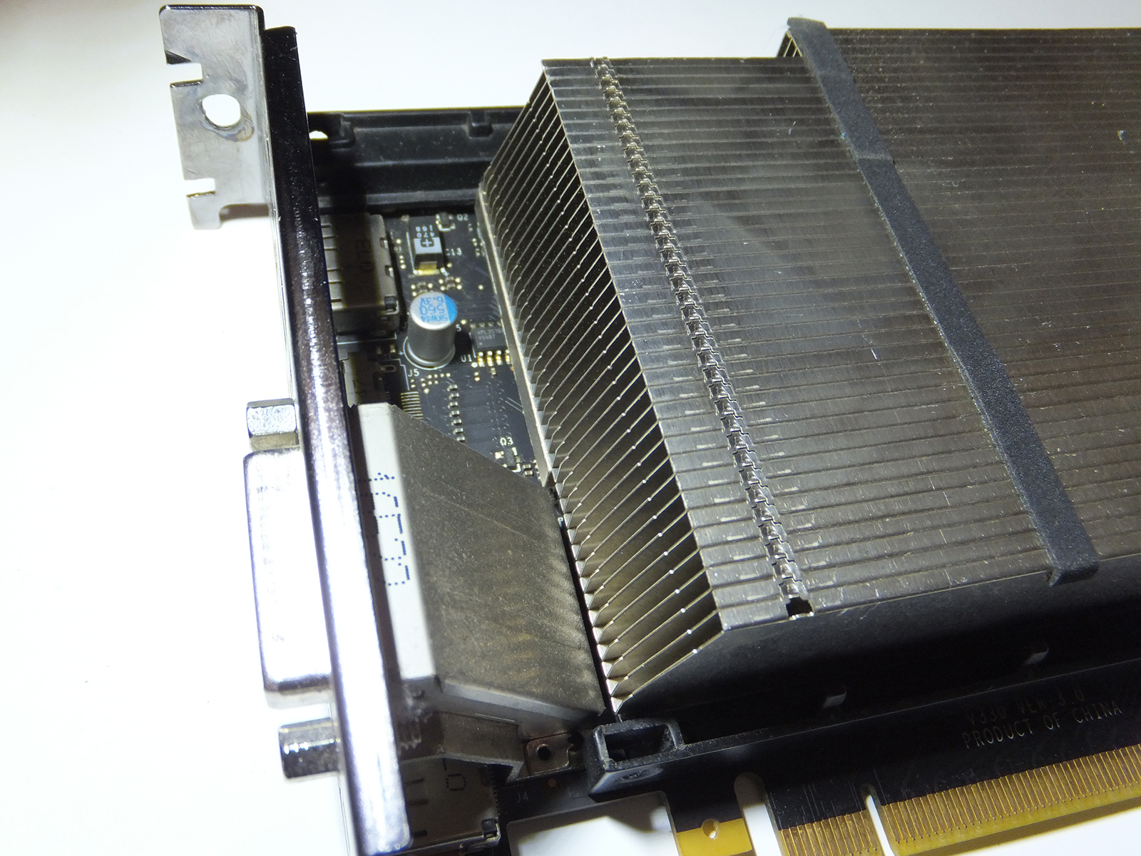 DVI-D порт конечно портит всё перекрывая собой приличную площадь воздушного канала, но система охлаждения даже в таких условиях работает тихо.