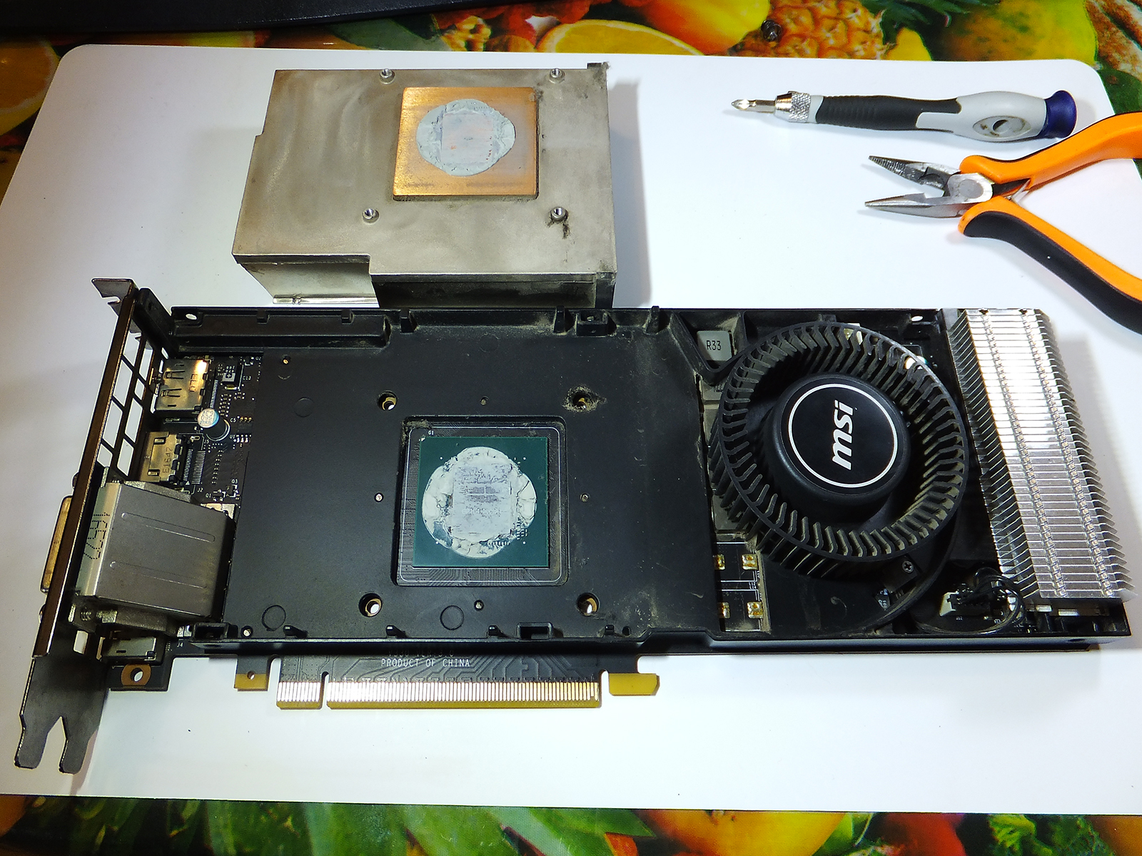 Винты некоторые пришлось откручивать пассатижами, ибо все без исключения были сорваны неподходящей отверткой под размер винтов, неужели так сложно просто оставить в покое видеокарту если нет подходящей для разборки отвертки???