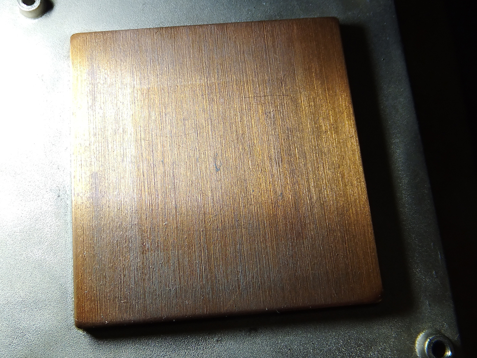 Пятак системы охлаждения очень неоднородный, глубокие царапины повсюду, по-хорошему стоит заполировать данную поверхность, но как-нибудь в следующий раз, ибо после полировки от качества термопасты практически не будет зависимости.