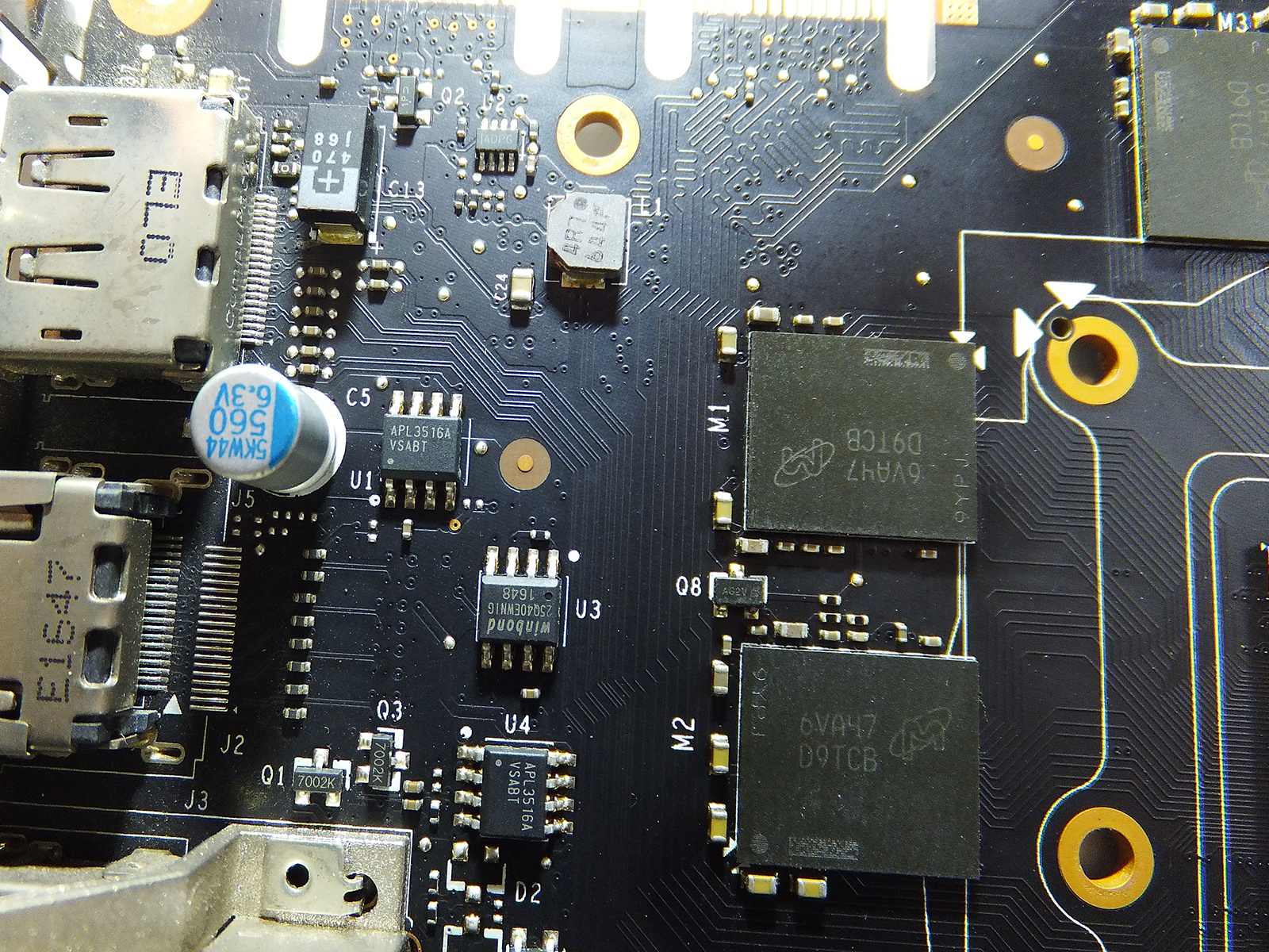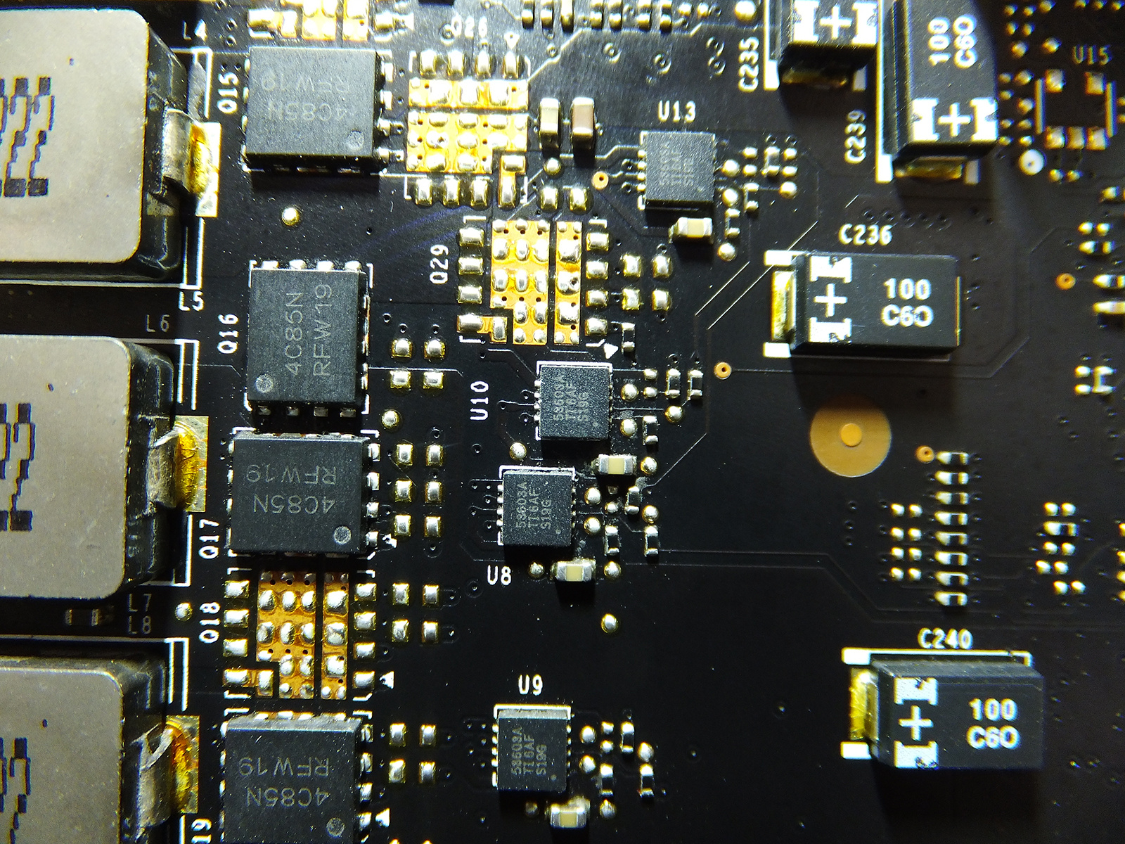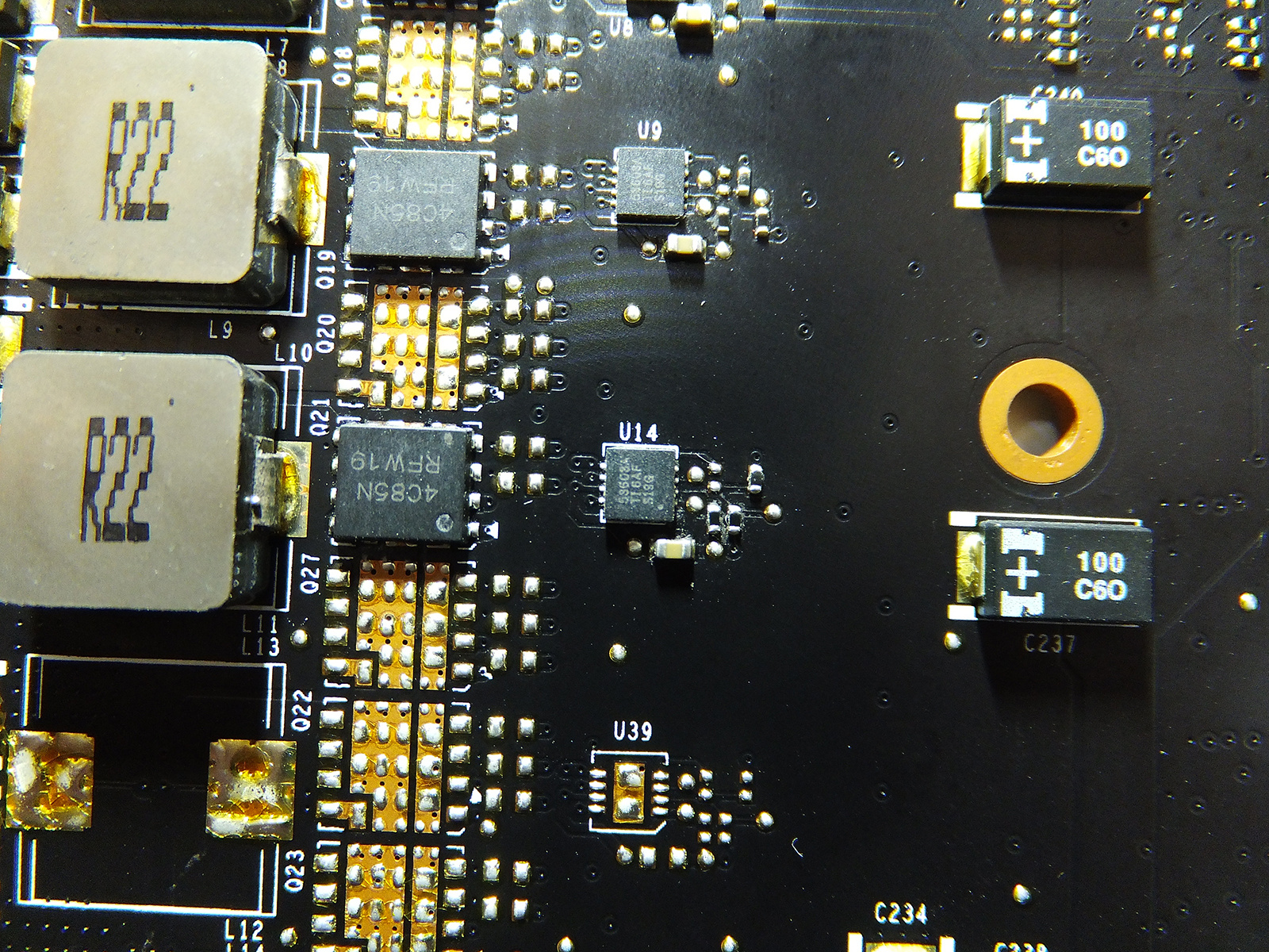 | GPU PWM | uP9511P (UGP69E) | До 8 фаз, 4 фазы использовано. 200-600 kHz |