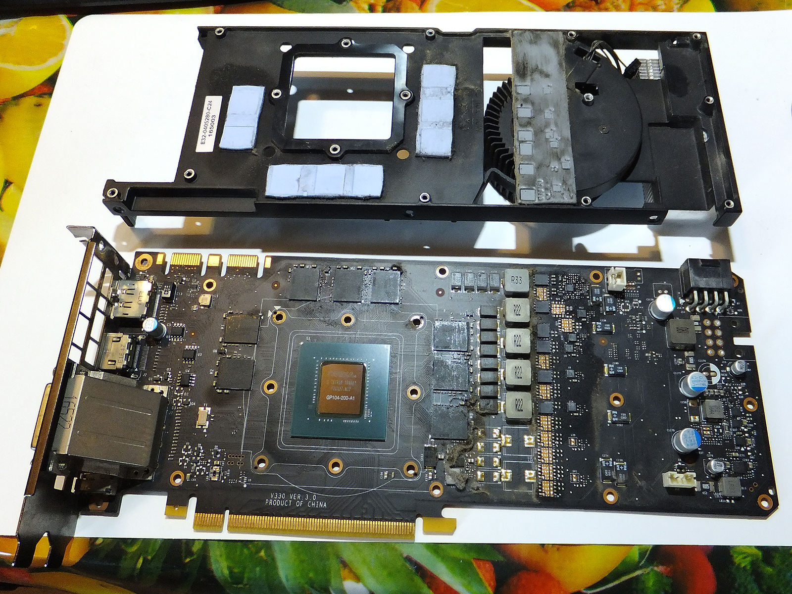 После разборки видеокарты стало известно о её начинке, и она следующая: