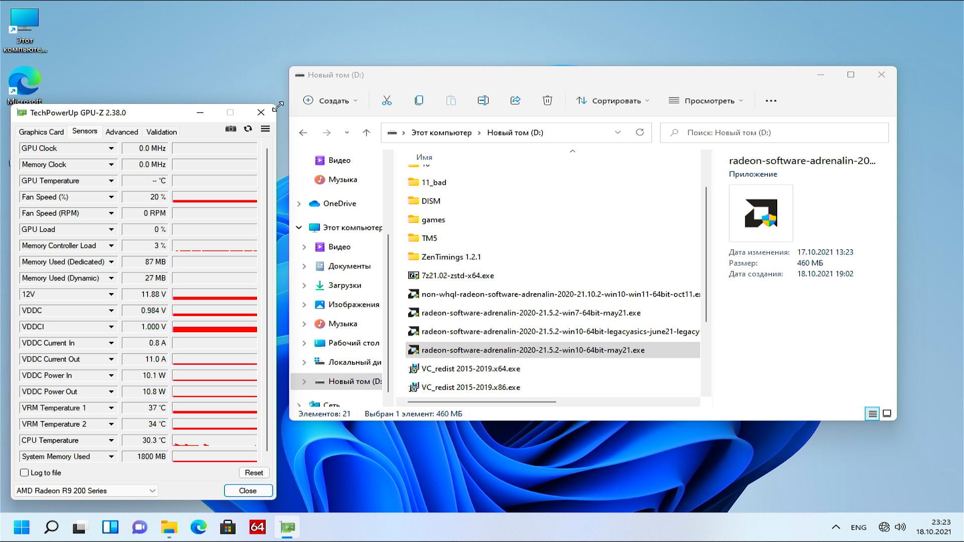 Естественно драйвер 21.10.2 отказался устанавливать себя с видеокартой R9 290, ради интереса я решил запустить драйвер от Windows 7 и он тоже отказался устанавливаться, но драйвер от Windows 10 версии 21.5.2 спокойно установился на Windows 11.