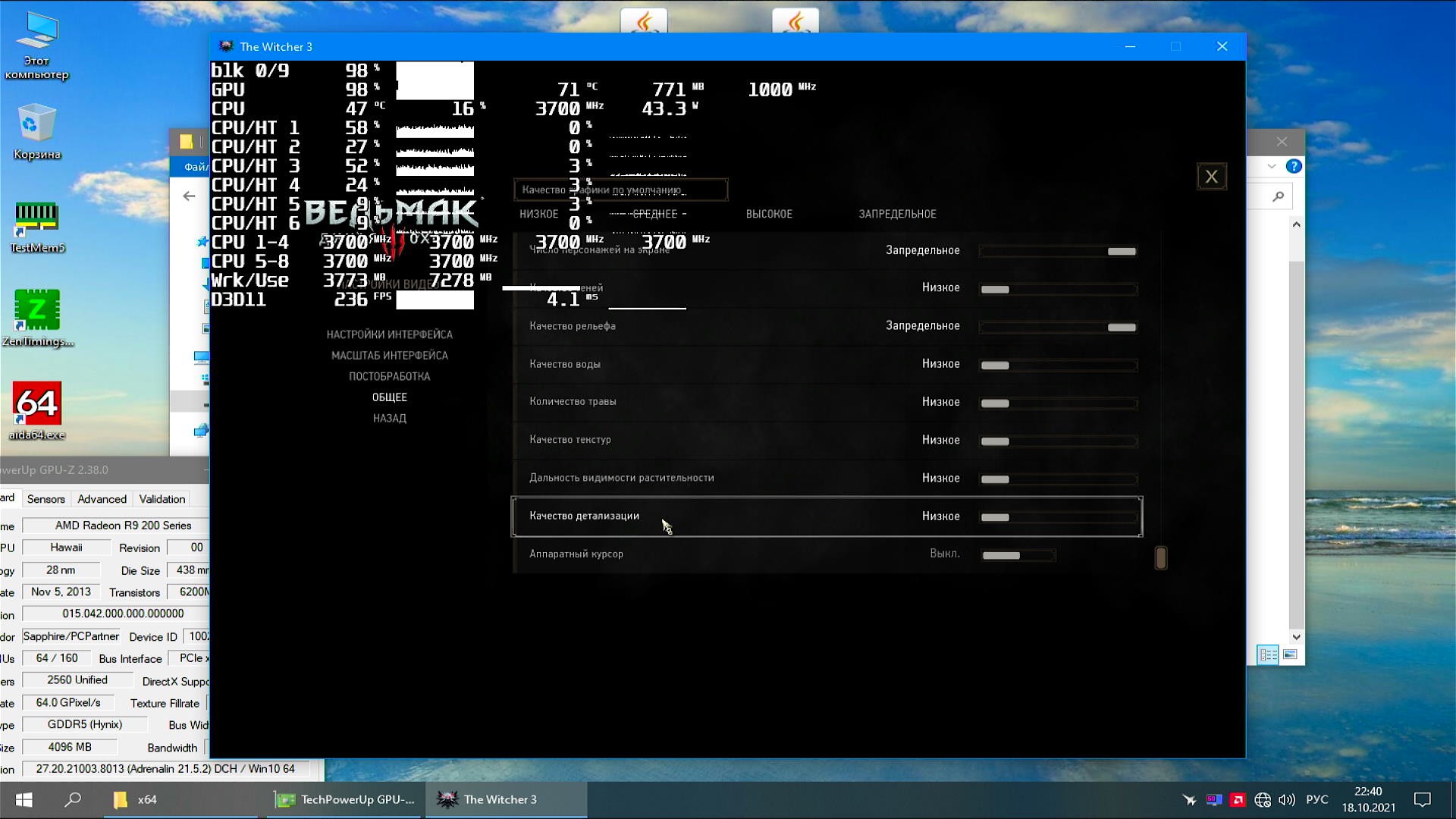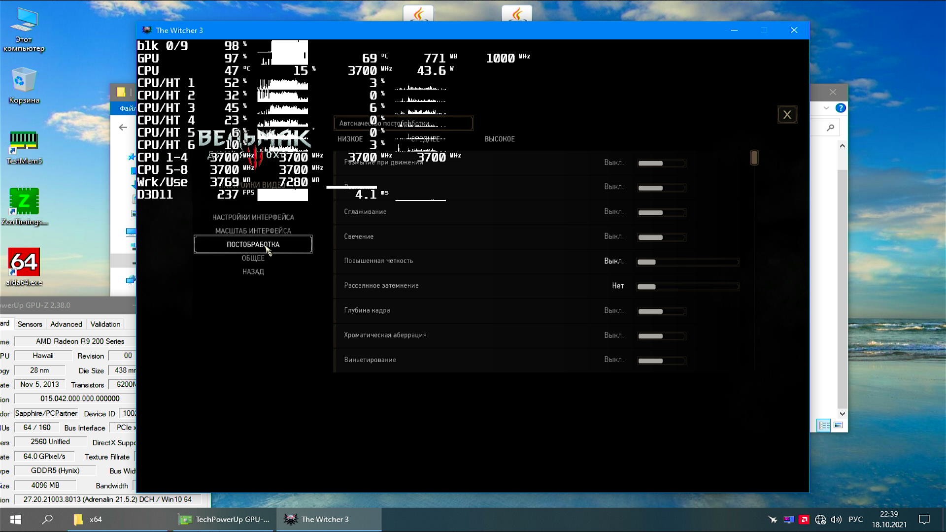 Примечание: Я изменил настройки в "Ведьмаке" пытаясь достичь упор в процессор, но мне это не удалось даже с видеокартой R9 290, результаты "Ведьмака" сравнению не подлежат с результатами тестов RX 560.