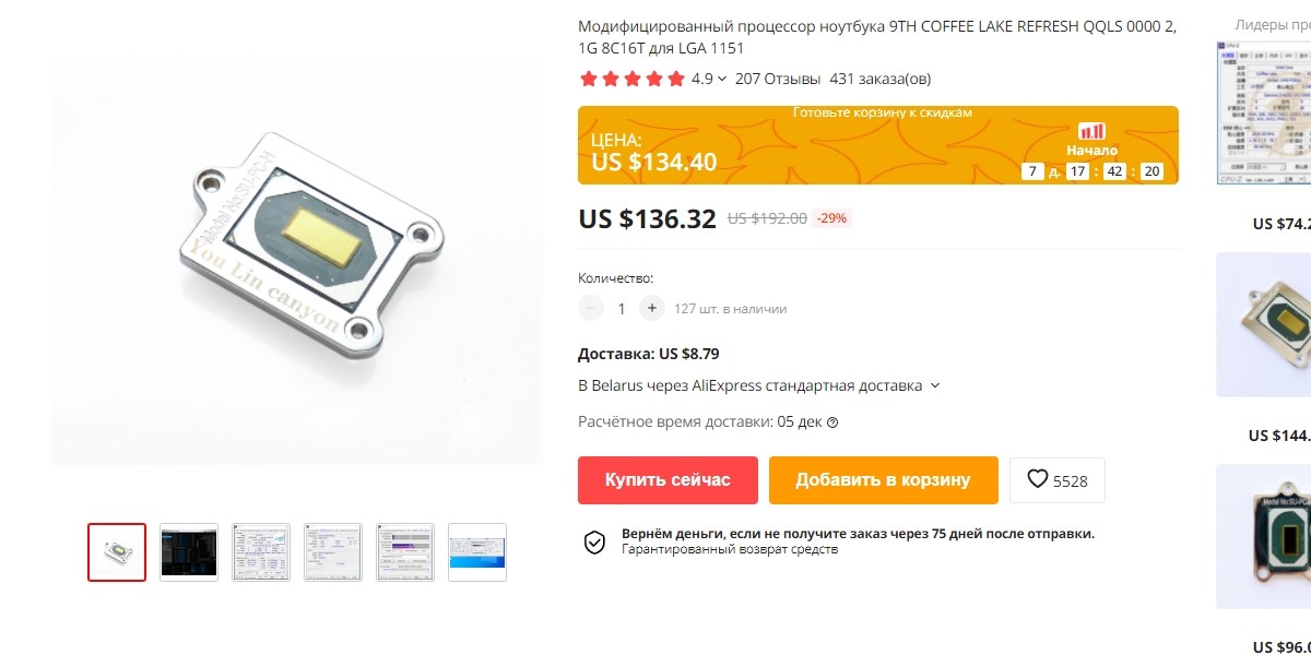 Дальше я смотрел уже в сторону CofeeLake, даже процессор от ноутбука обнаружил с переходником под LGA1151, не густо в плане производительности, но такой вариант тоже оставил на Ali, попросту нереально достать системную плату по адекватной стоимости на барахолке, а в магазинах уже не продают...