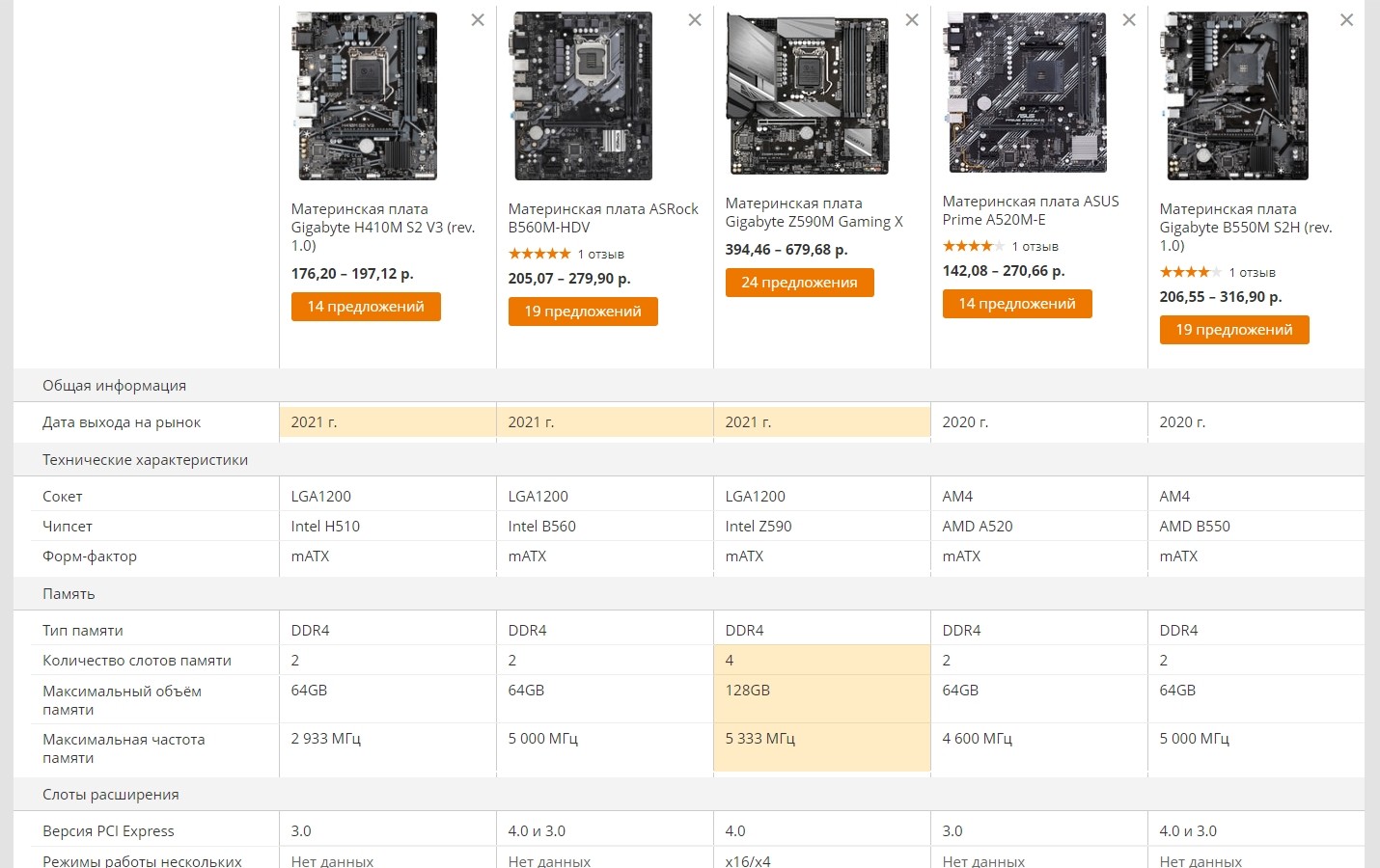 С системными платами ситуация интереснее, разница в стоимости между H410/470/510 и B560 практически никакая, сэкономить на системной плате в случае Intel просто невозможно в отличие от AMD, и это я еще не вывел многочисленные B450 платы, хотя даже x370 встречается по низкой цене.