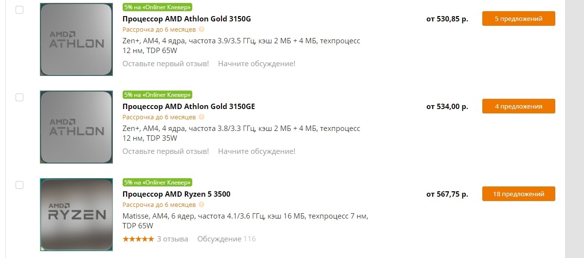 Не найдя ничего адекватного с приемлемыми рисками на Aliexpress я принялся искать в каталоге местных магазинов, первым делом я решил посмотреть как вообще обстоят дела на рынке в низкой ценовой категории, что в продаже и по каким ценам, но ситуация выглядела довольно печально для AMD.