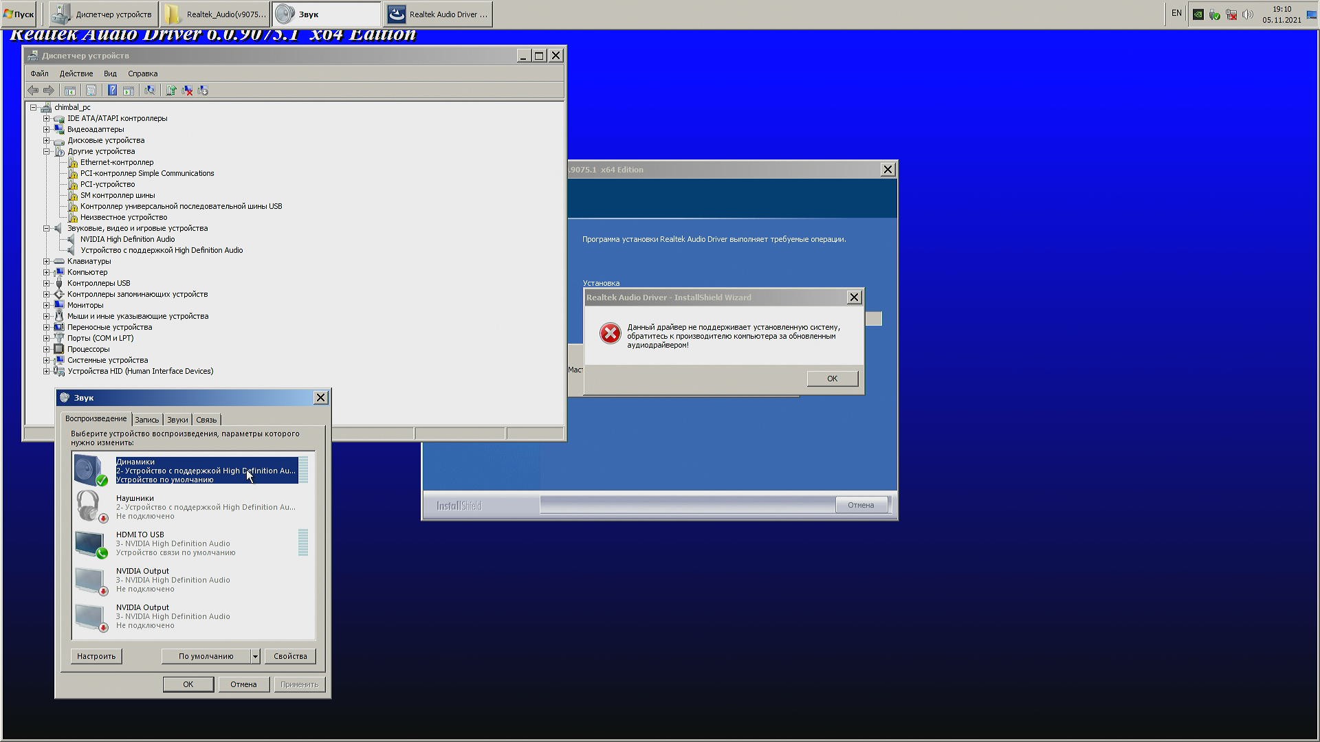 Со звуком у производителей и Microsoft не получилось "вставить палки в колёса", ибо Realtek просто сделал драйвер и не городил никаких ограничений искусственных куда можно его устанавливать, а куда нельзя, у меня уже был драйвер аудио в Windows 7 так что я не испытал проблем.