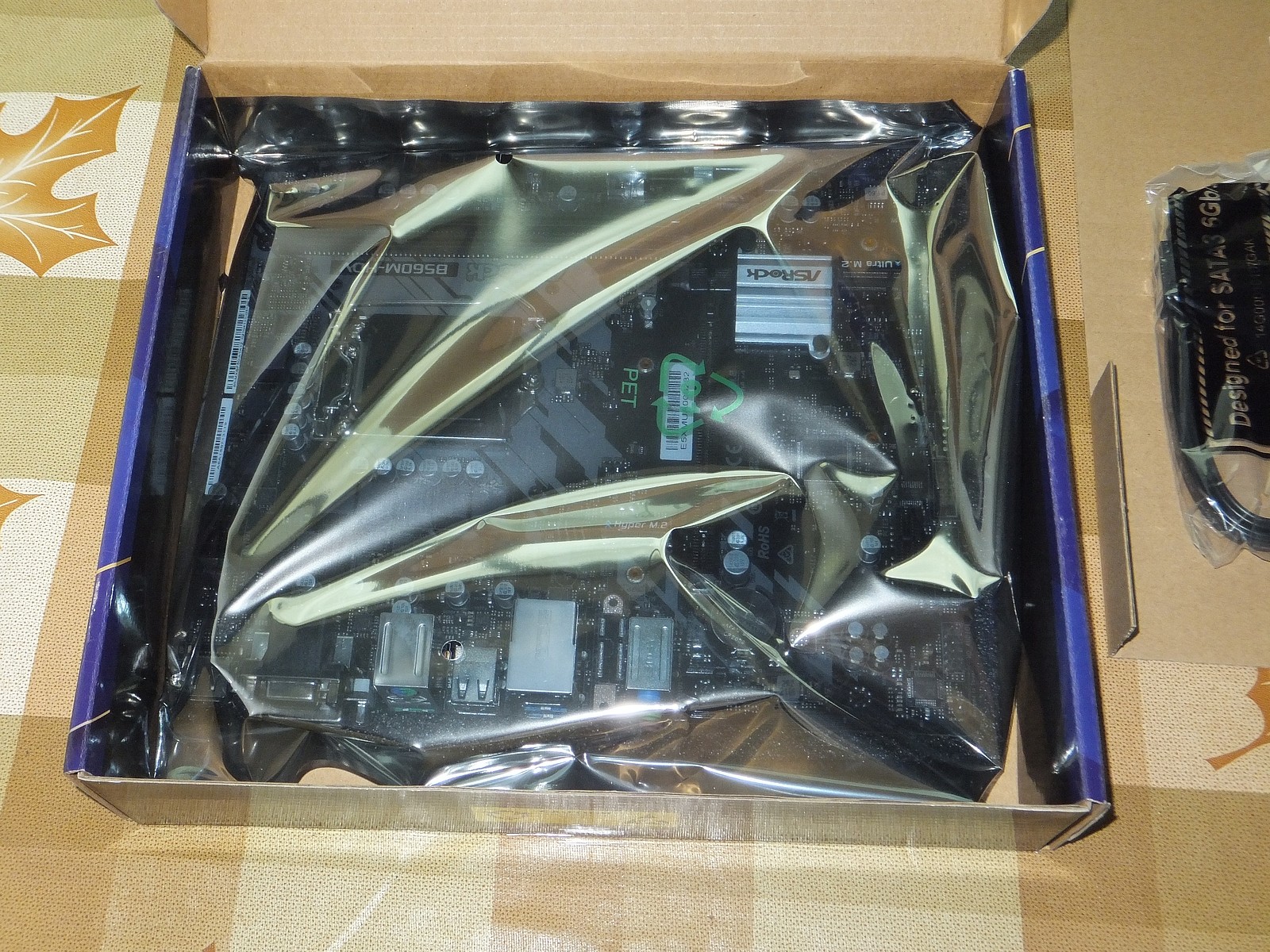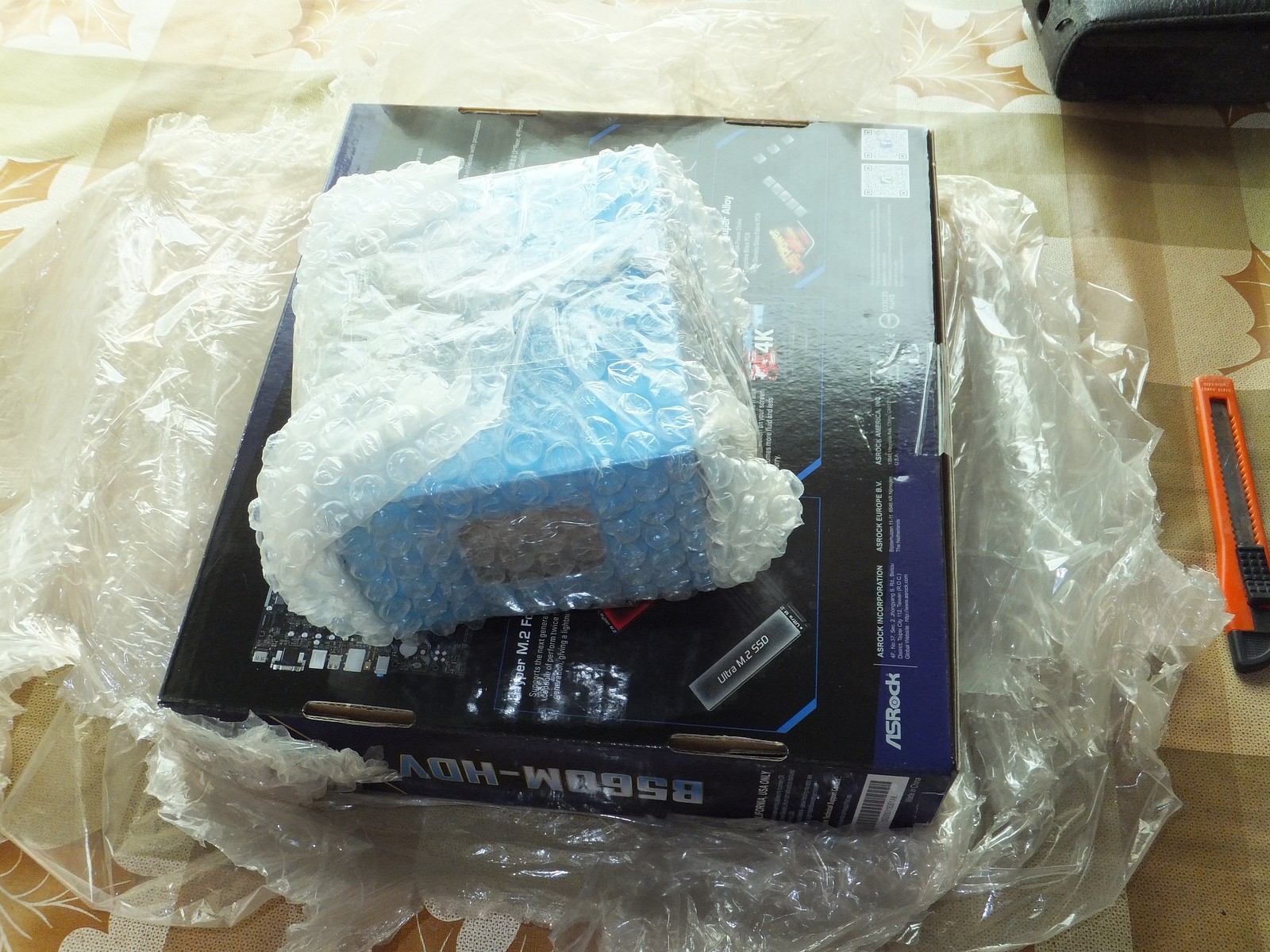 Коробка от системной платы вполне достойная, может быть слишком проста, но никаких нареканий не вызвала при использовании, ASRock сделали полочку из картона для комплекта, это было очень хорошее и удобное решение, сам картон тоже не вызвал нареканий с моей стороны.