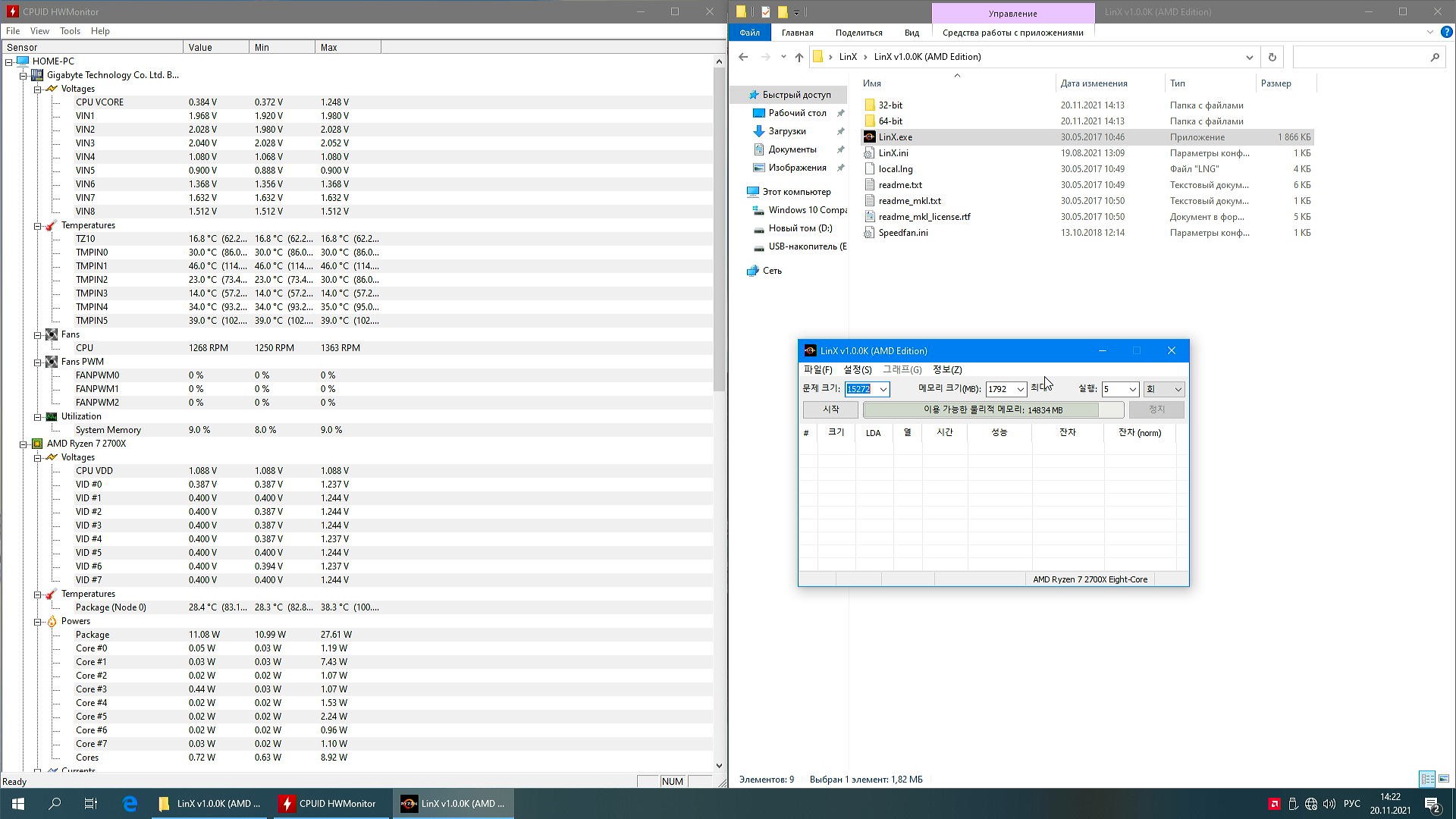 Процессор в полной конфигурации с двумя модулями CCX (8/16), частота зафиксирована для всех ядер на уровне 3.9ГГц с помощью P-State, нагружать буду LinX 1.0.0K AMD Edition, из охлаждения PCCooler GI-X4B.