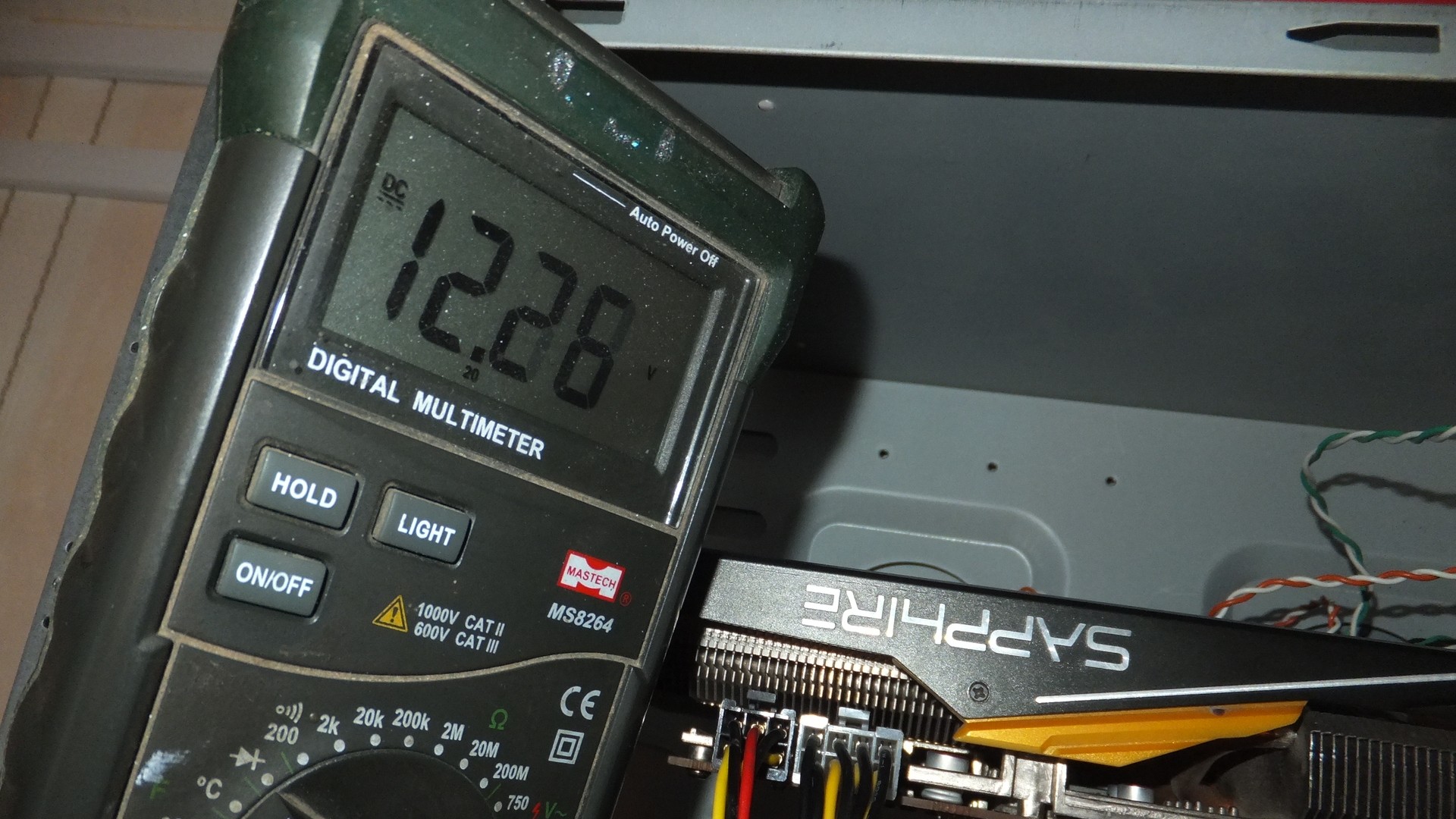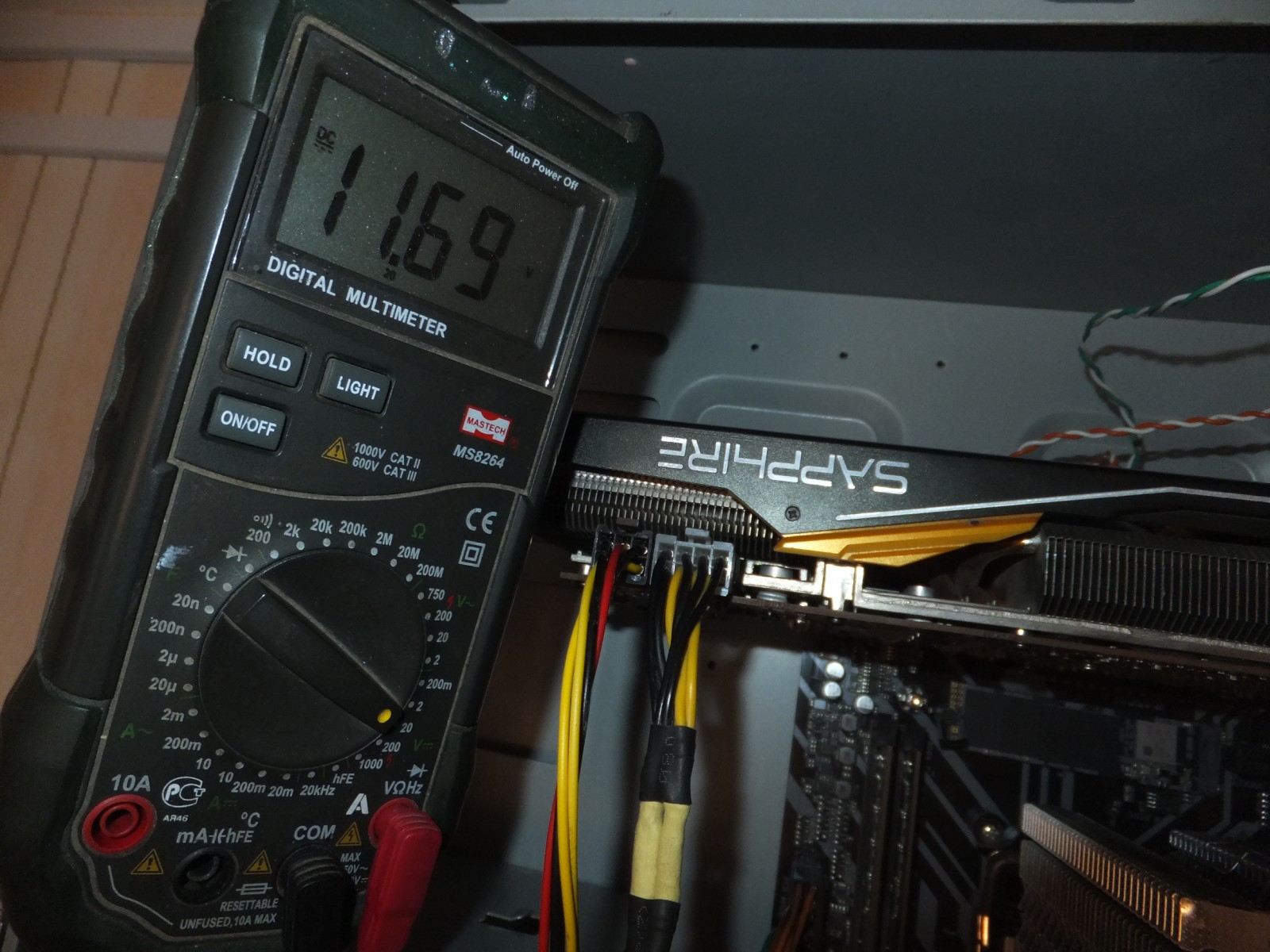 Тем временем доходит до системной платы всего ~11.7v, до видеокарты ~12.14v что говорит о потере напряжения на проводах между системной платой и процессором, учитывая разницу напряжения и мощность, можно посчитать что на проводах теряется примерно ~5-6 Вт мощности.