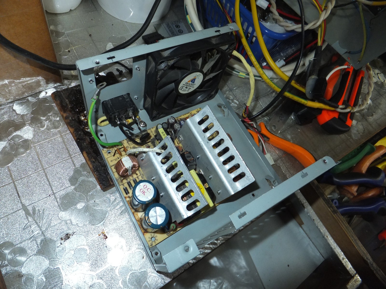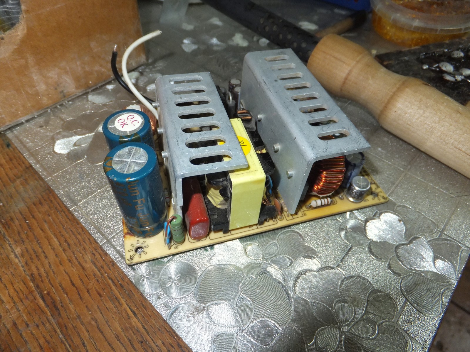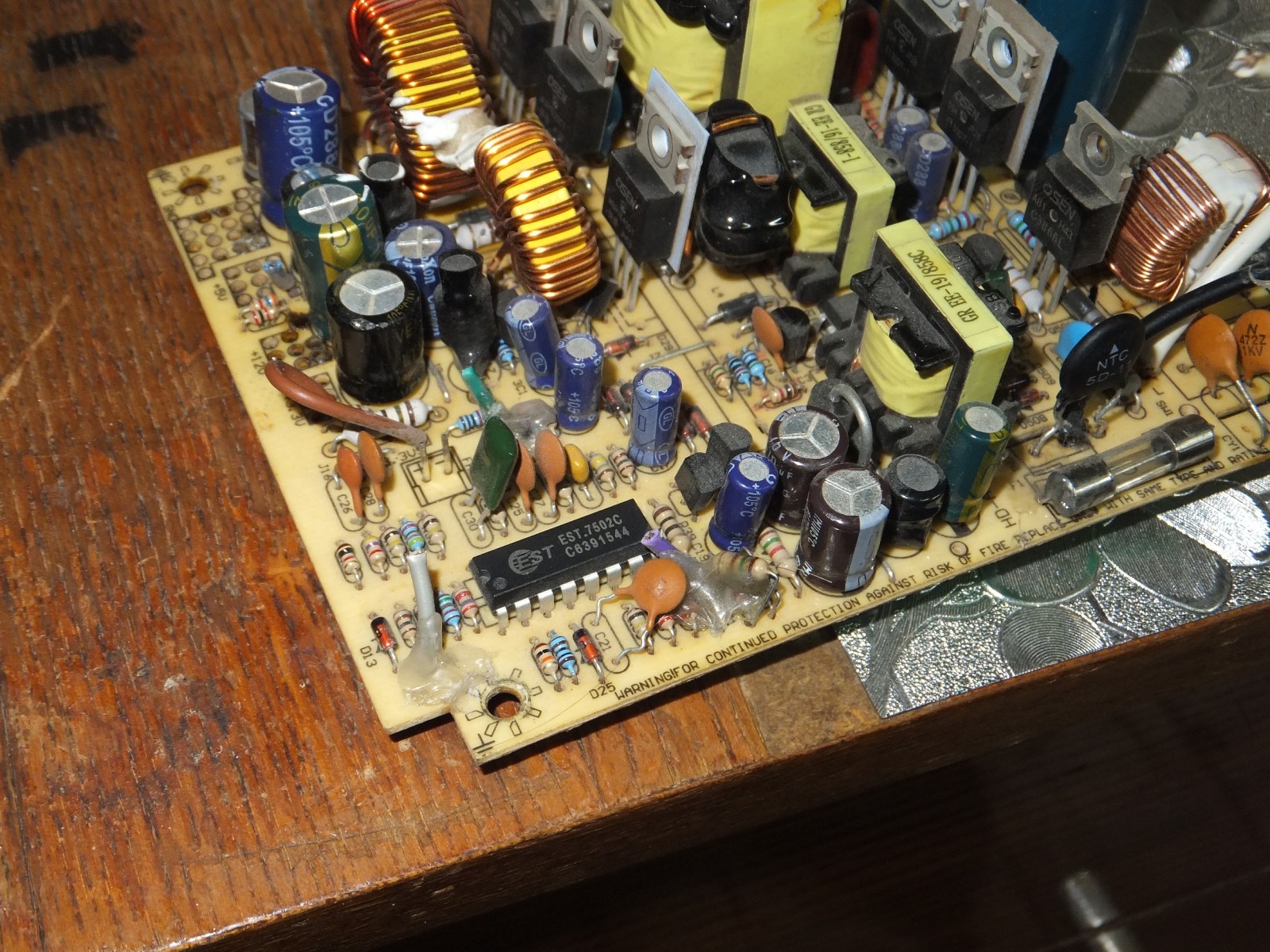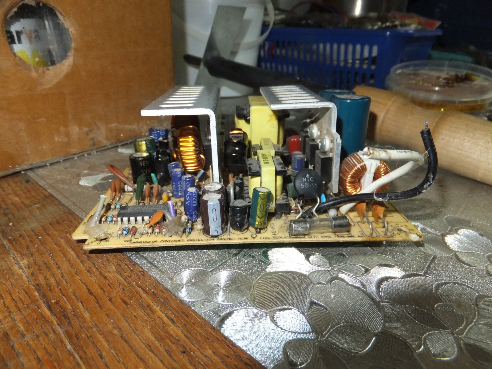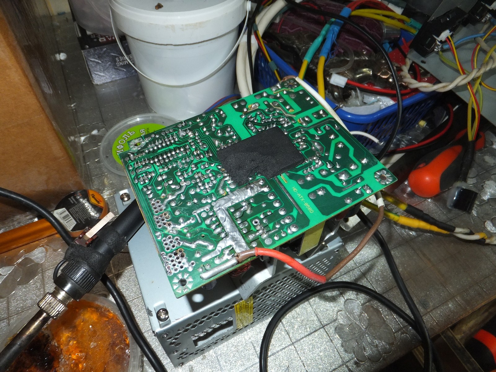 Данный блок питания я уже немного дорабатывал раньше, добавил когда-то давно фильтр входной ибо отсутствовал с завода, термистор чтобы не искрило при подключении к электросети, пропаял часть контактов ибо заводской припой дал трещину местами, проверял конденсаторы на esr.