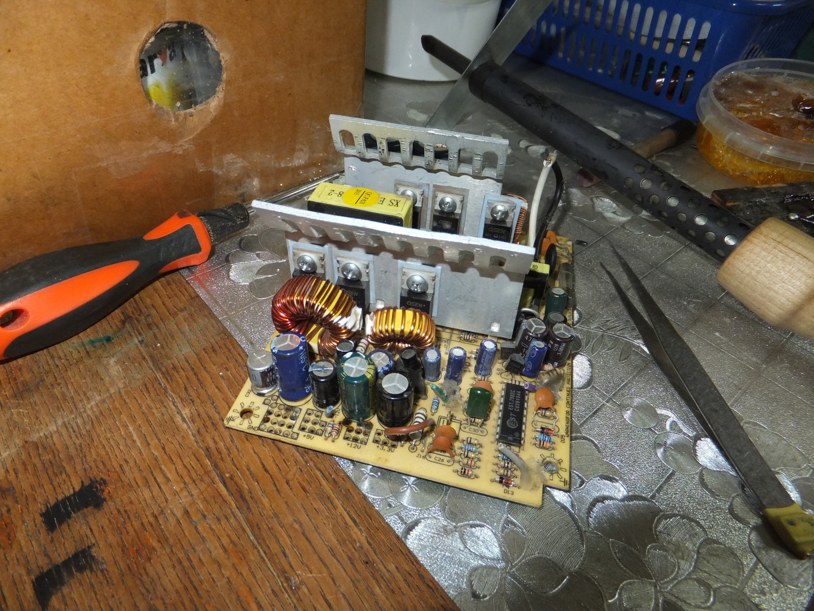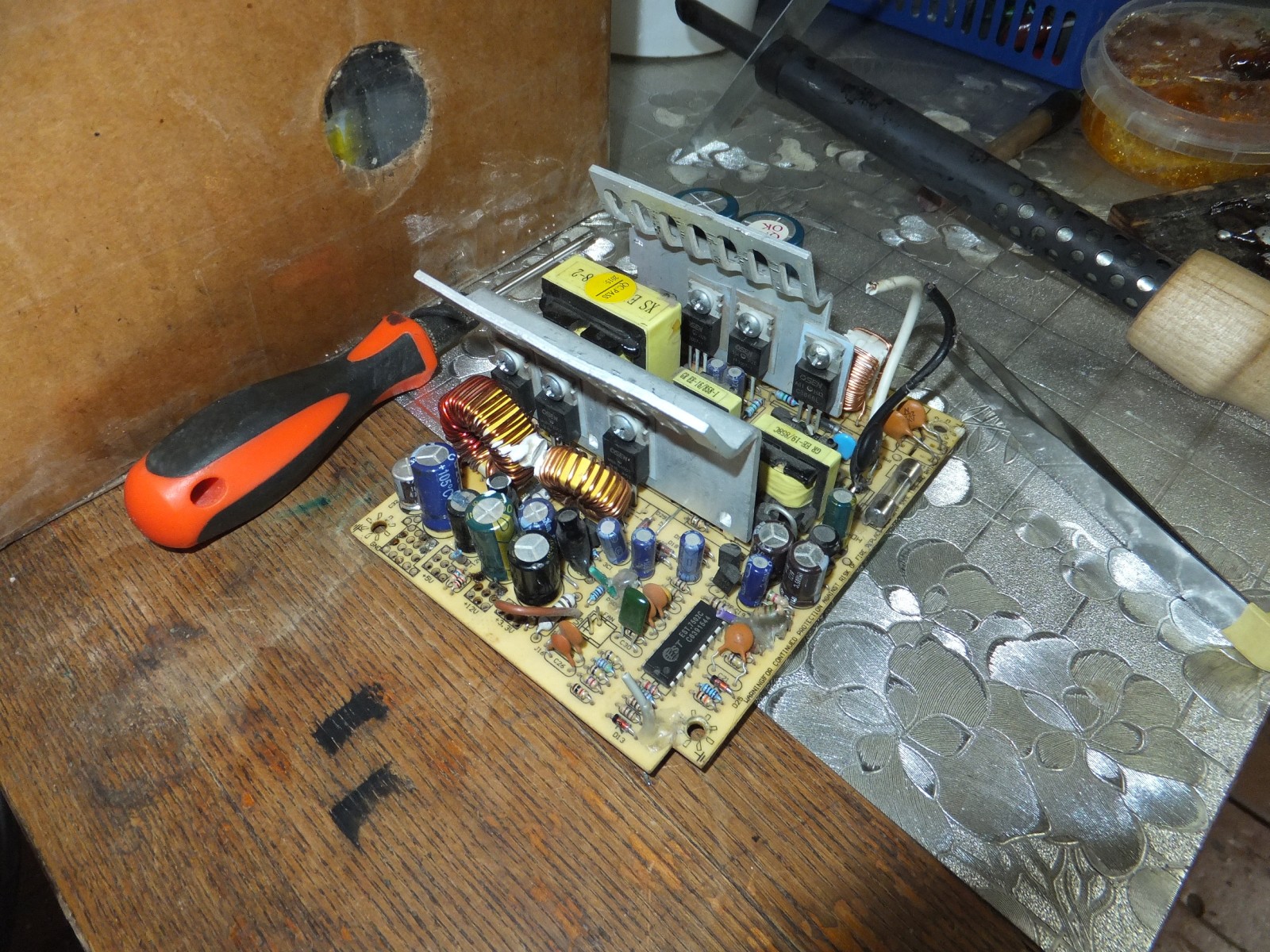 После проводов я взялся за сам блок питания, отпаял все лишнее, посмотрел в целом на него, и решил немного изменить радиаторы.