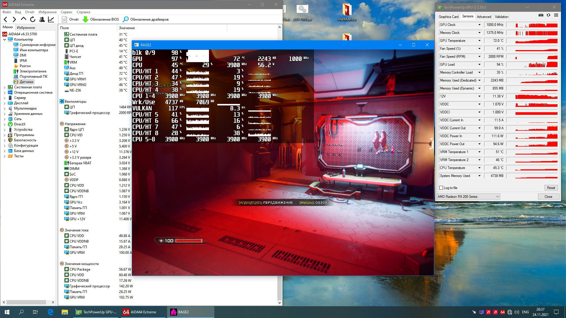 В целом блок питания выдержал R9 290 + R7 2700X в игре, правда я так и не узнал сколько они потребляют по отдельности, да и вообще ничего не узнал кроме уровня напряжения на выходе блока питания...