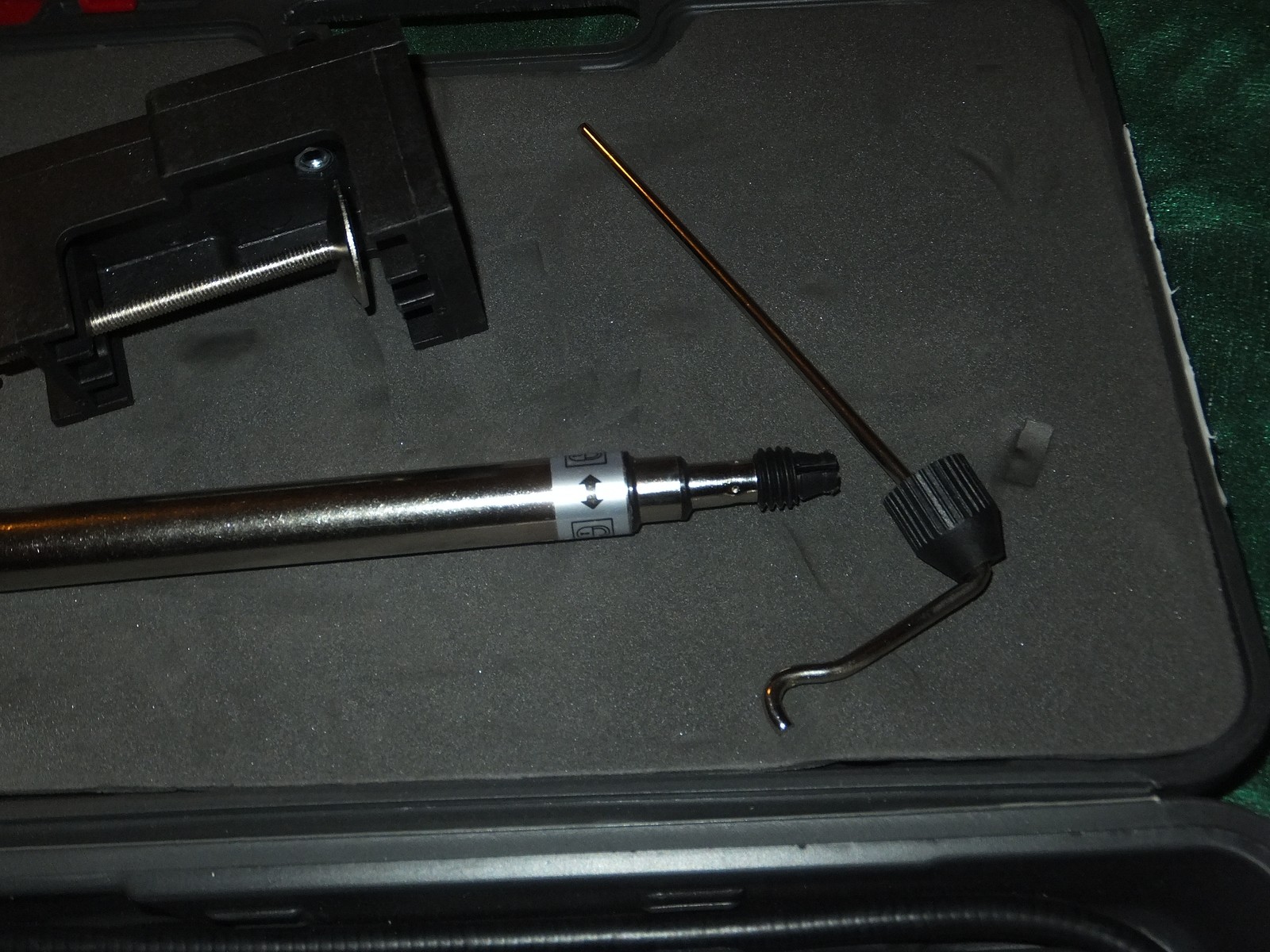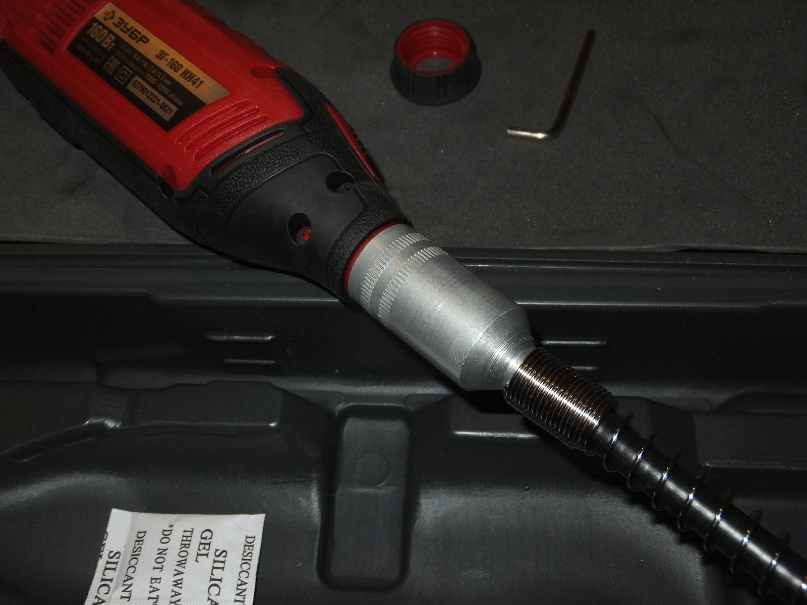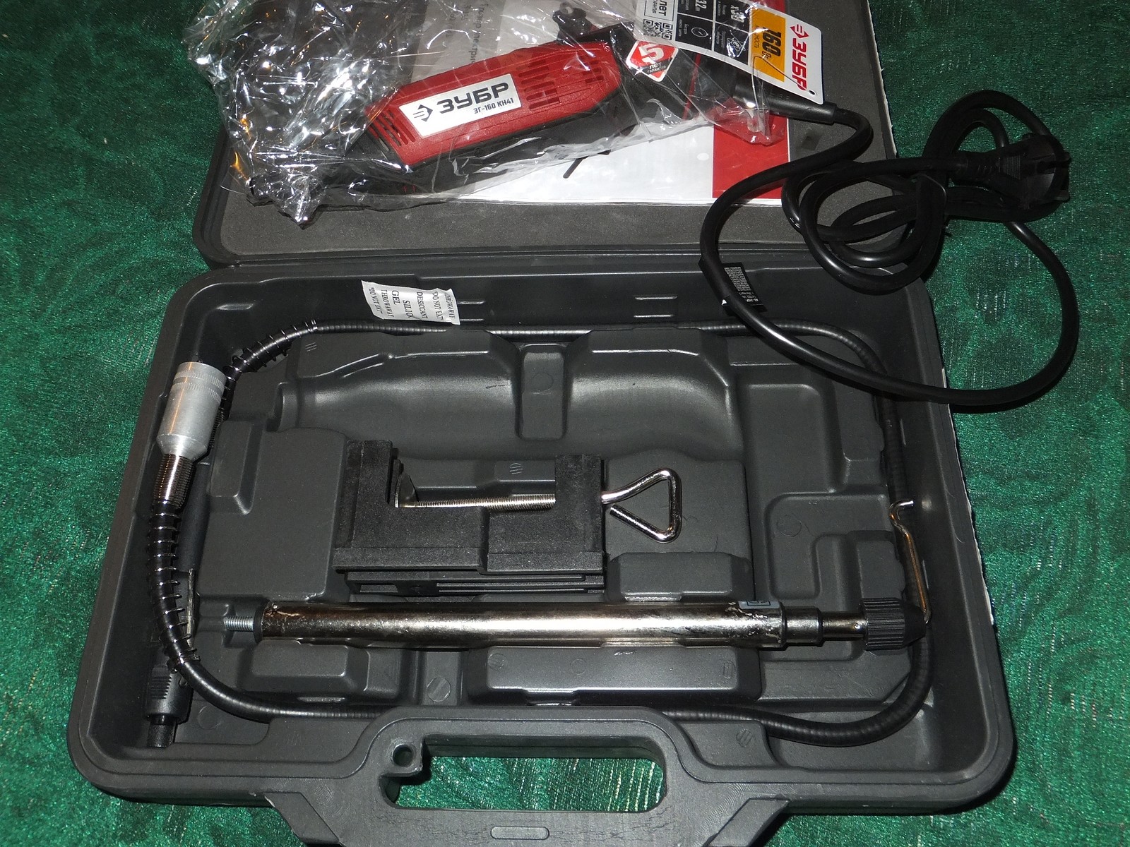 Кроме гравера в кейсе уложилась струбцина, телескопический держатель и гибкий вал.