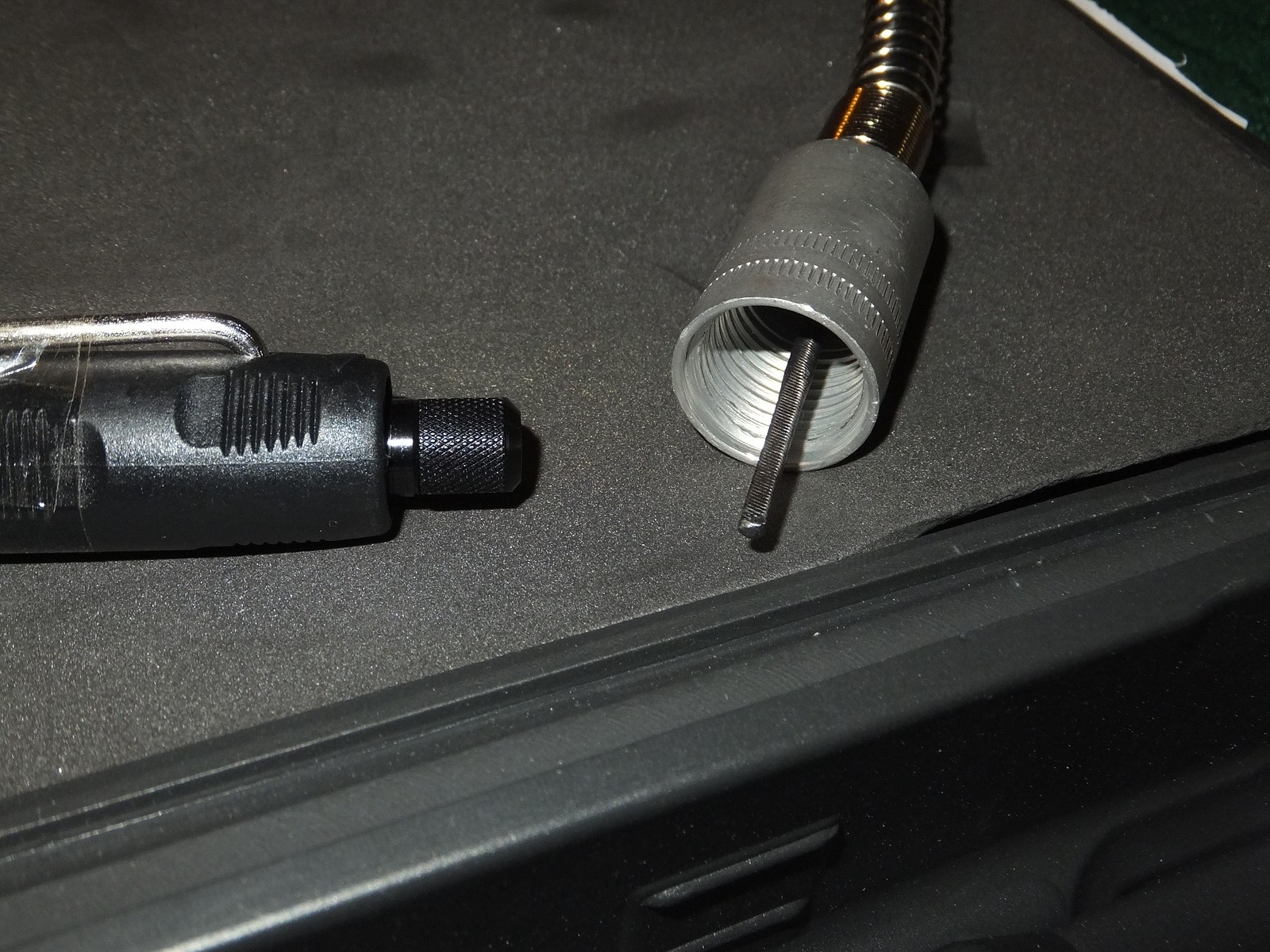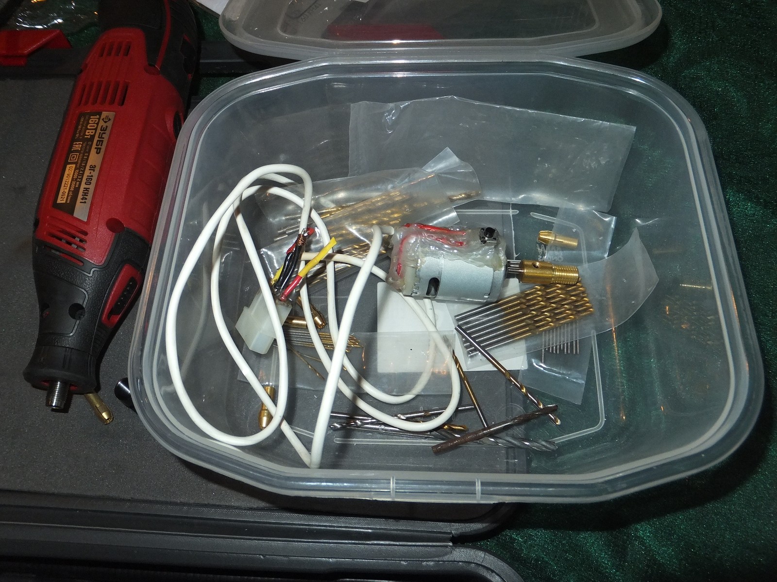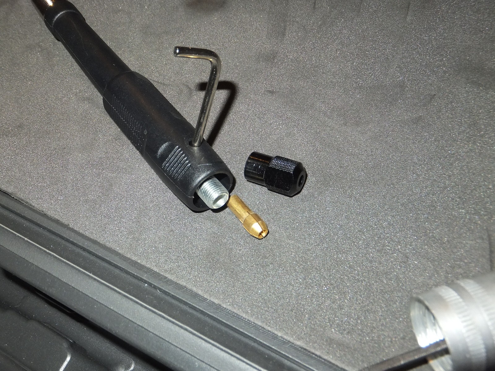 Кроме гравера в кейсе уложилась струбцина, телескопический держатель и гибкий вал.