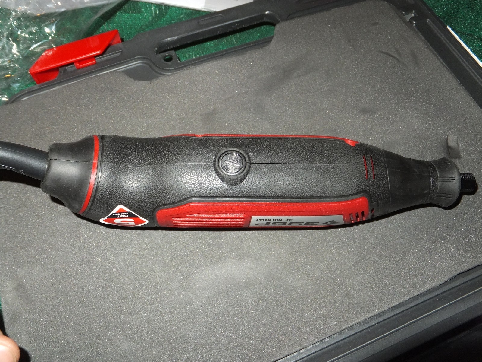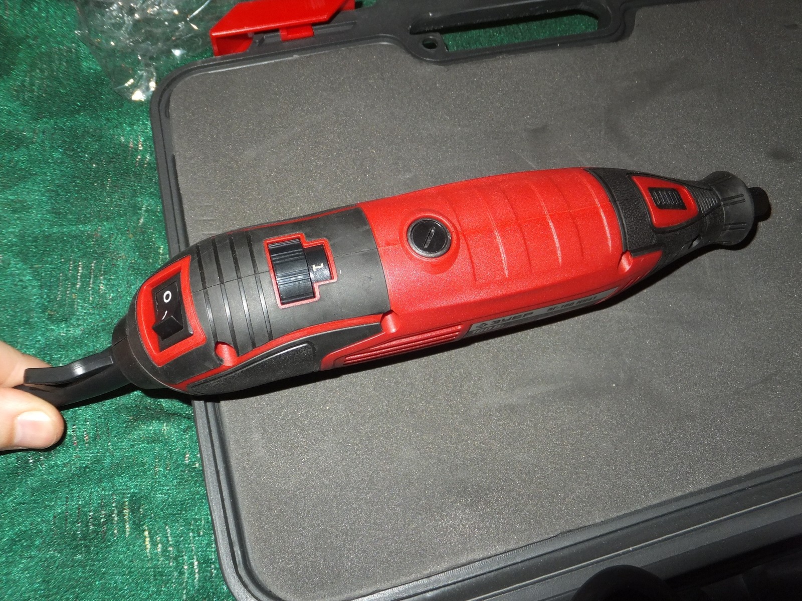 Гравер поставляется в кейсе, при этом сам кейс был запечатан в пленку и на ней наклеена наклейка от Wildberries с номером, что вероятно необходим при возврате по браку и возможно для других действий.