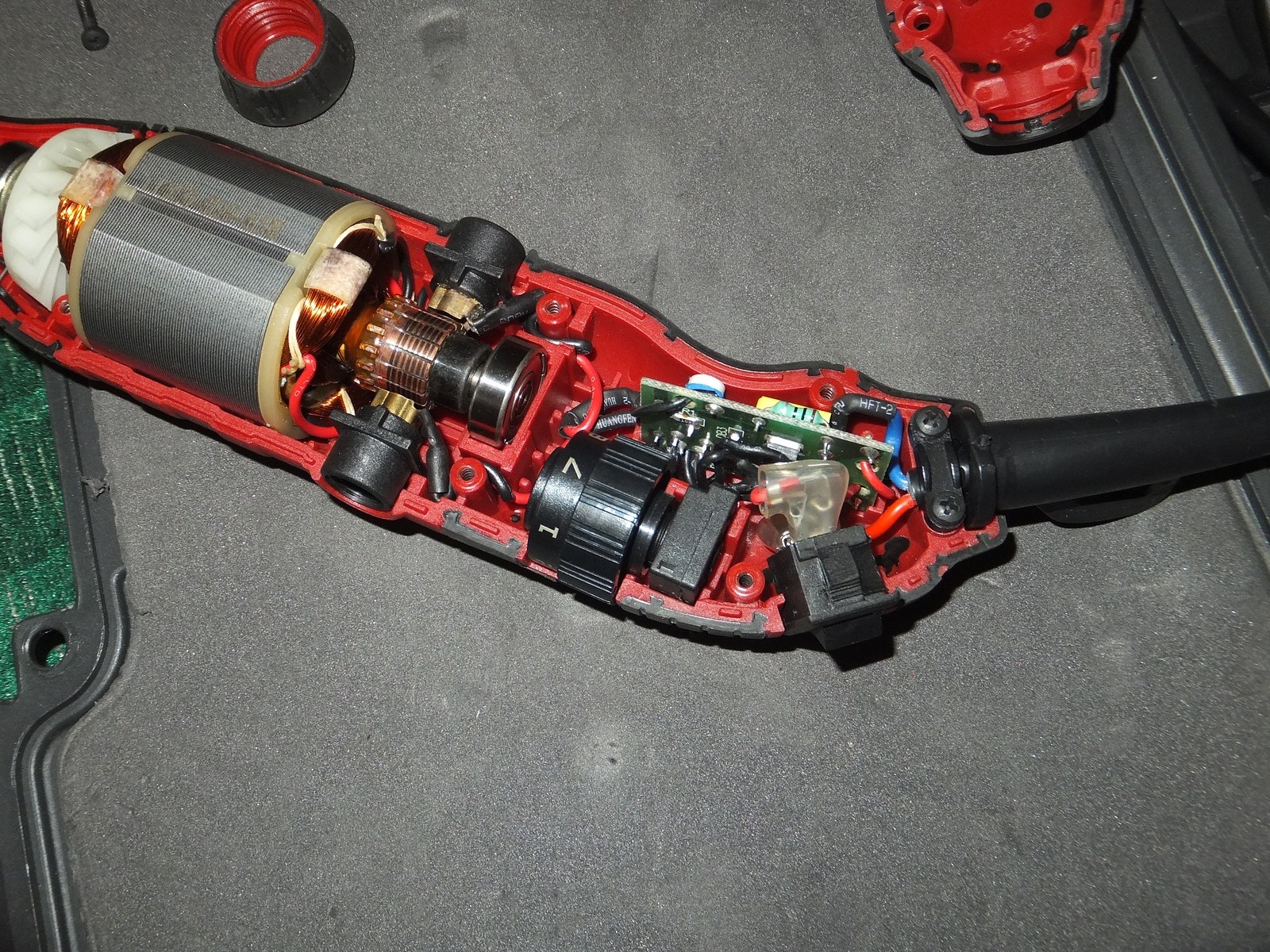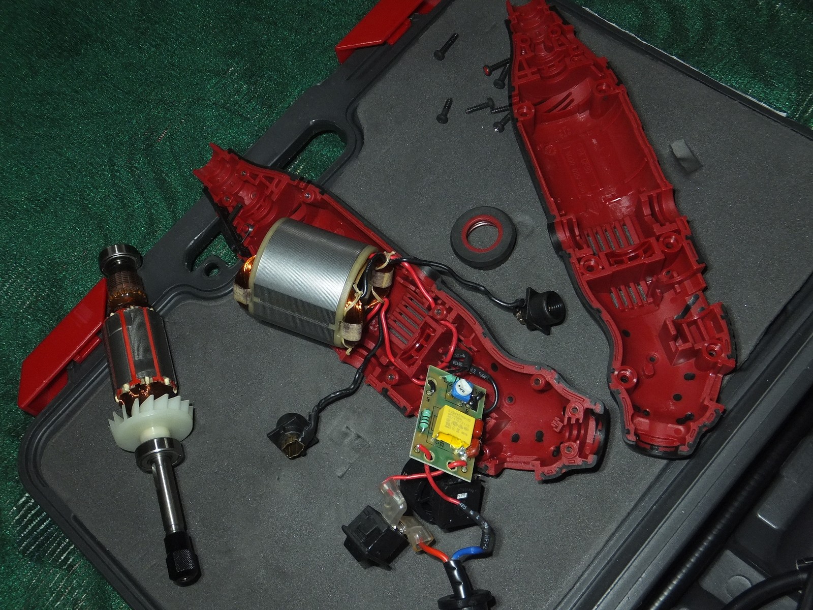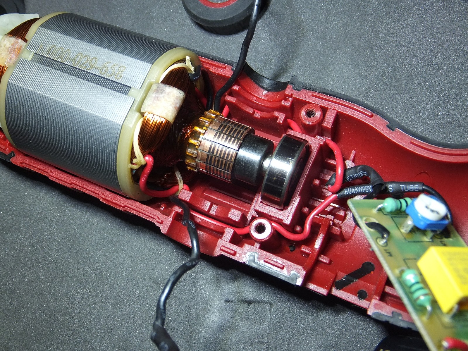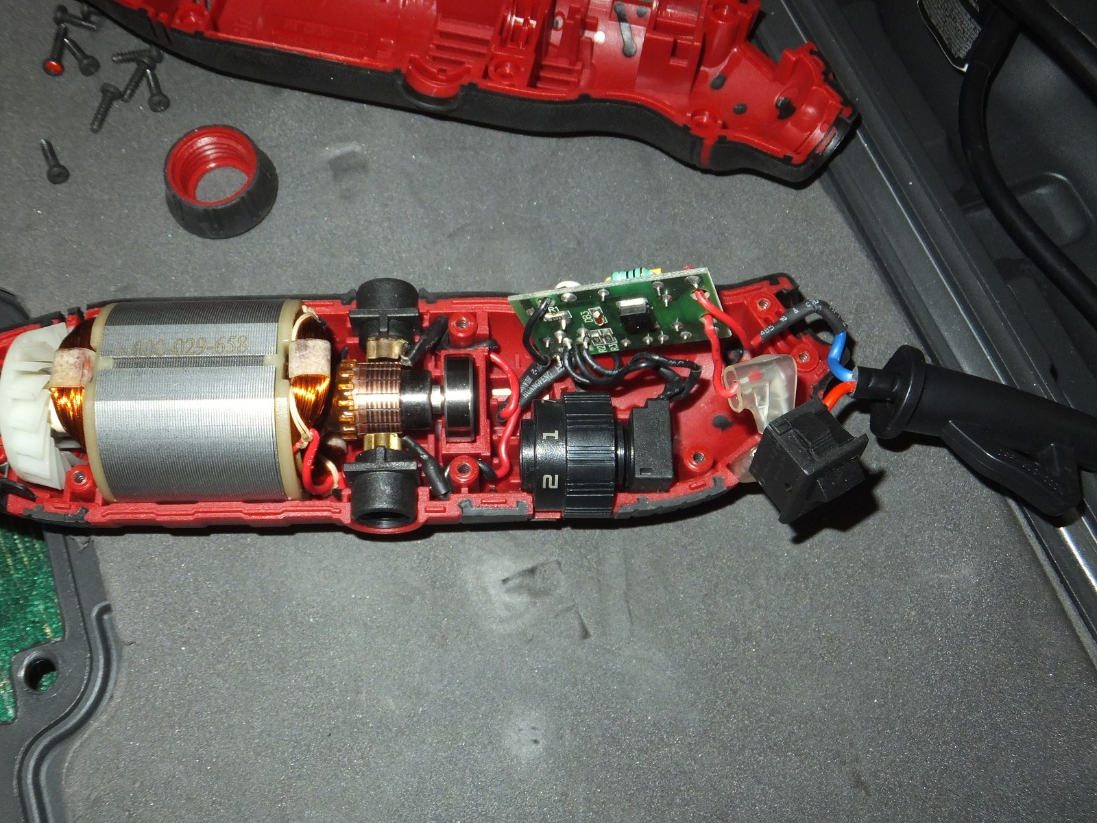Есть винты для доступа к щеткам, сам корпус хорошо держится в руке, никаких козявок присущих дешевому литью и закупоренных отверстий, хотя этот гравер из бюджетного сегмента.