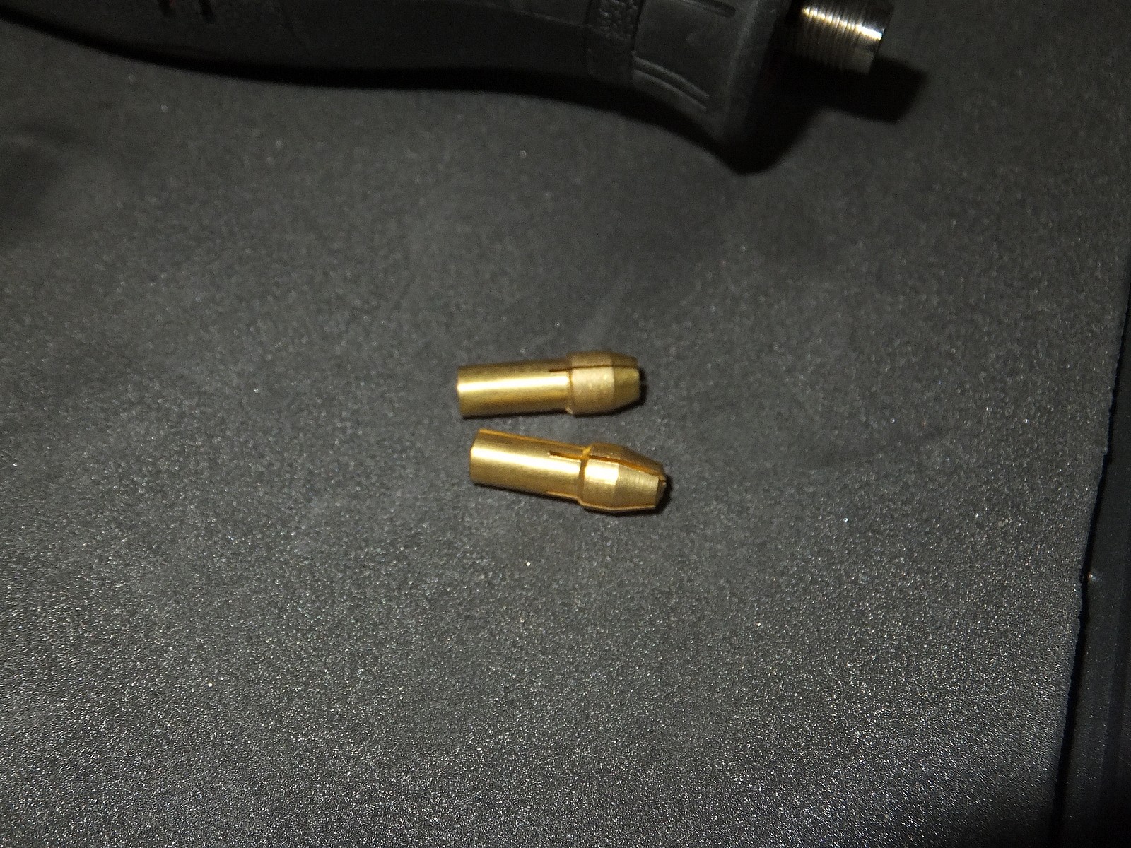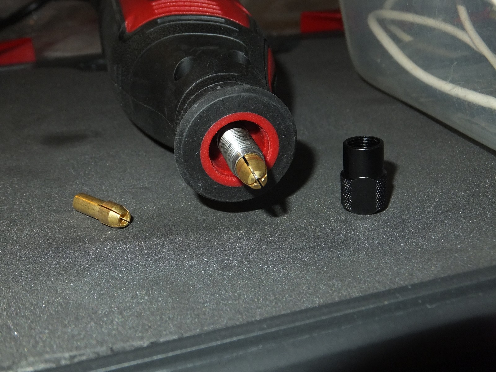 Сами зажимы оказались совместимы, китайские хоть и выглядят слегка иначе, но работают ничем не хуже стандартного зажима, что был в комплекте, в общем гравер имеет достаточно глубокую резьбу вала и совместим с более короткими китайскими цангами.