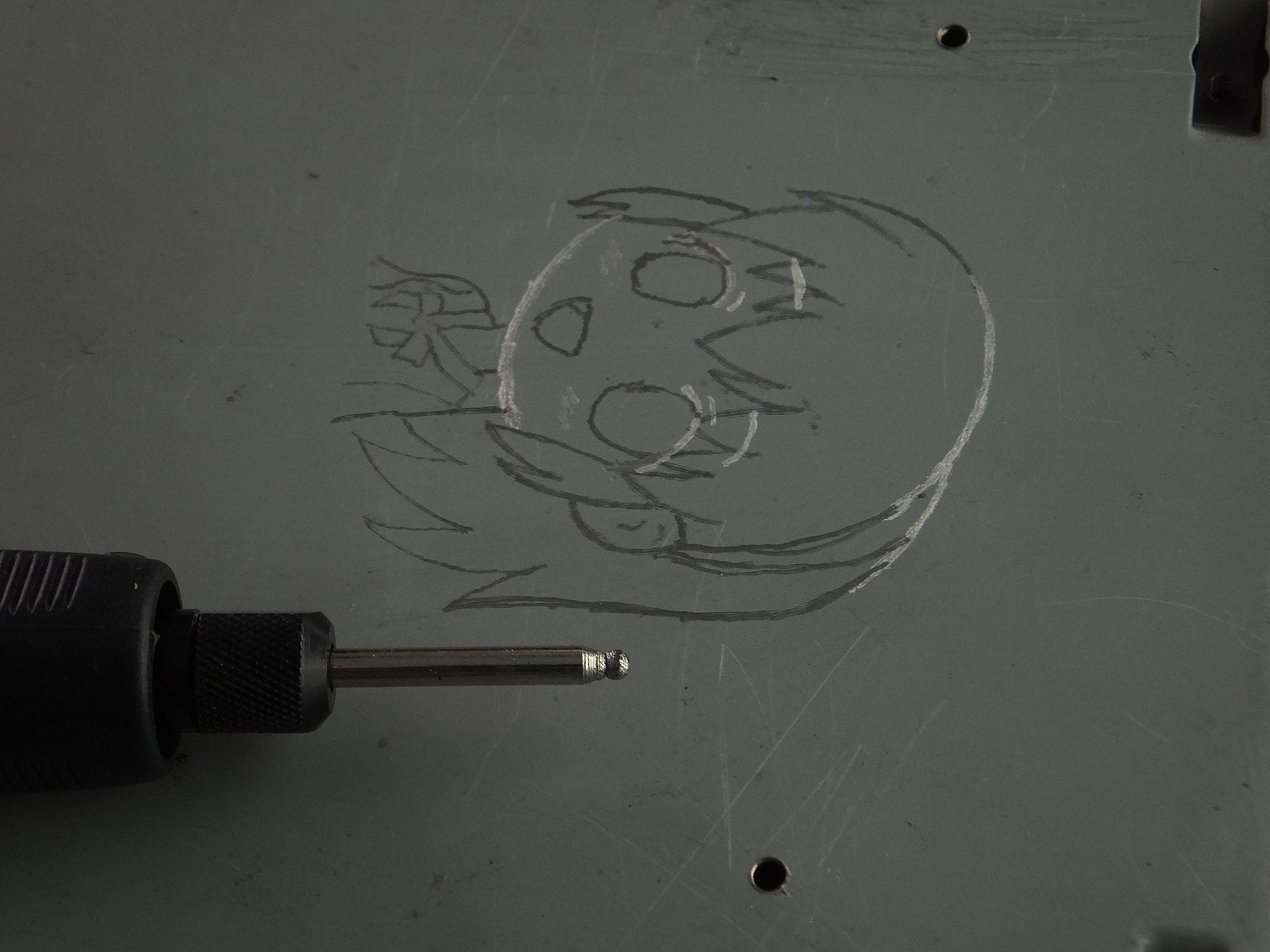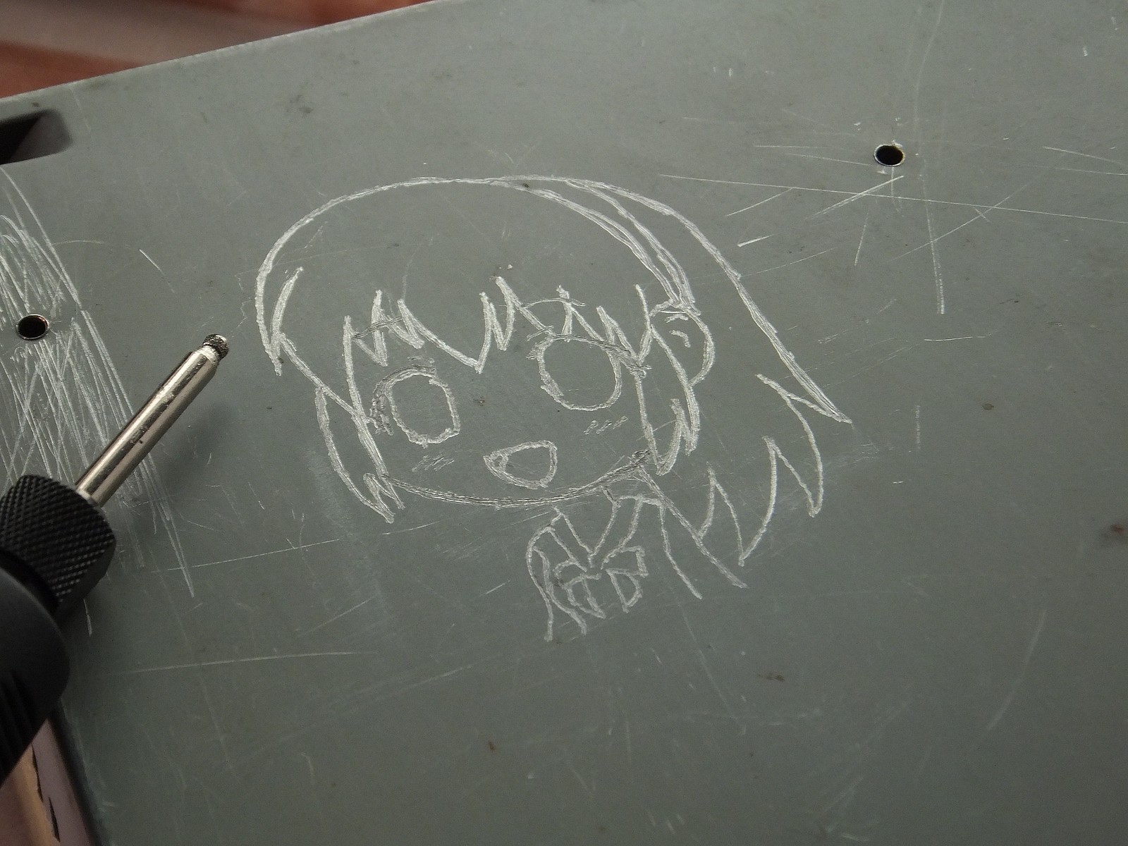 Гравировал насадкой с алмазным напылением в форме шара, особых сложностей в работе не возникло, разве что провод питания гравера дубовый, особенно при температуре ниже +10 градусов, гибкий вал весьма полезное дополнение пожалуй к любому граверу.